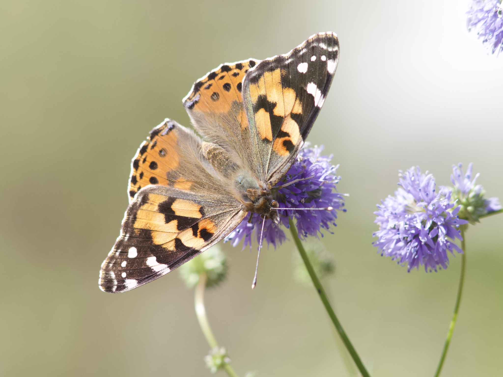 Vanessa cardui | species | Gilia capitata | species | eats | Animalia | Arthropoda | Insecta | Lepidoptera | Nymphalidae | Vanessa | Plantae | Tracheophyta | Magnoliopsida | Ericales | Polemoniaceae | Gilia | 34.065452 | -118.027464 | 2023 | 6 | 2 | http://creativecommons.org/licenses/by-nc/4.0/ | https://www.inaturalist.org/observations/165259426 | |