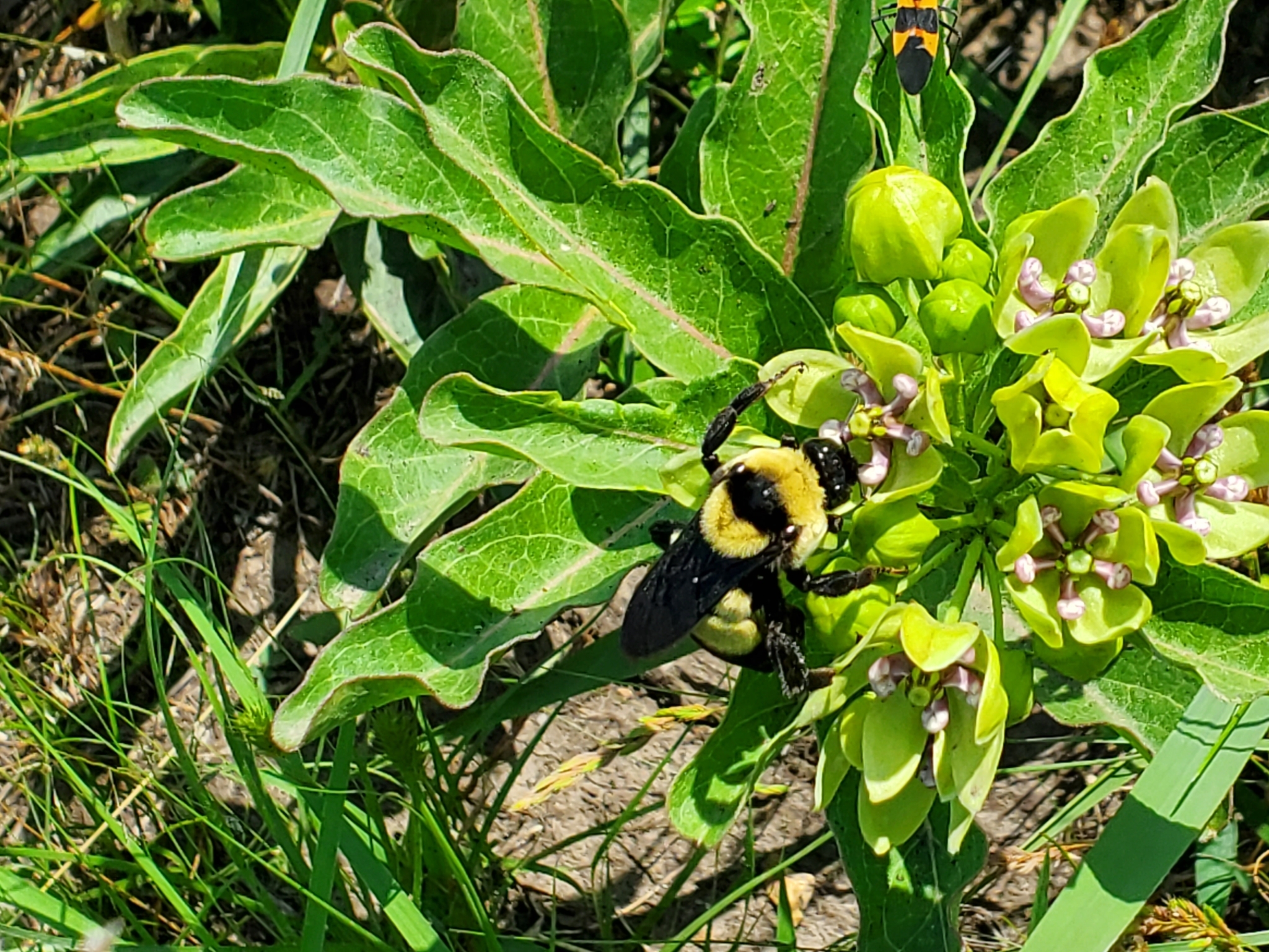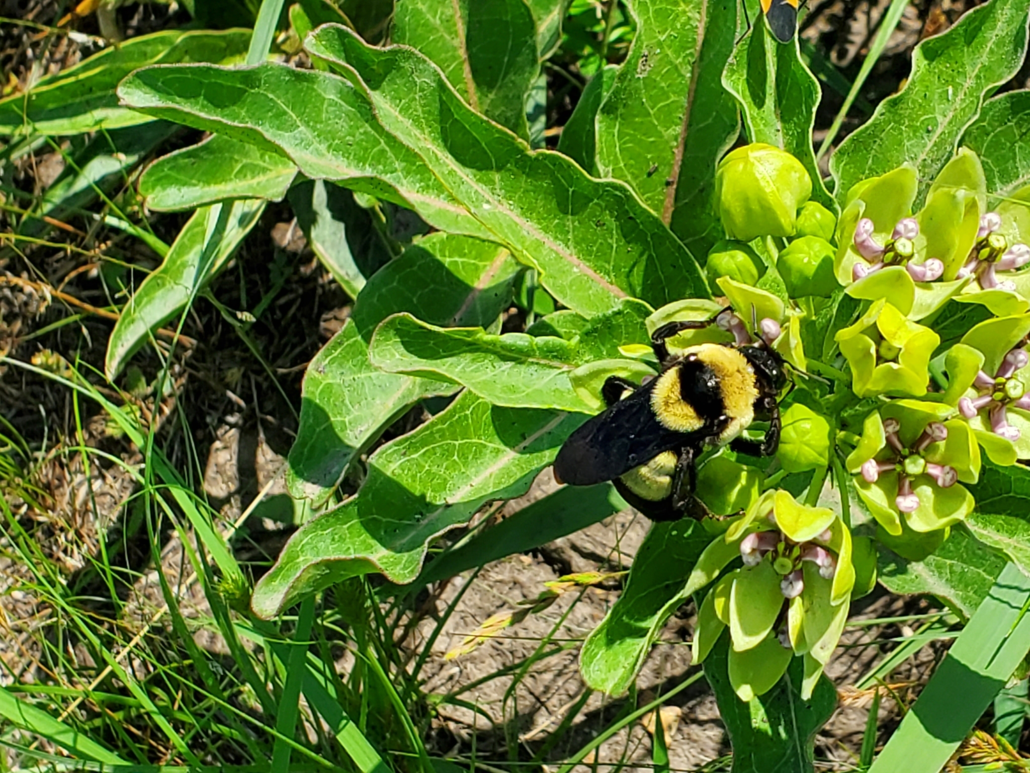 Bombus fraternus | species | Asclepias viridis | species | eats | Animalia | Arthropoda | Insecta | Hymenoptera | Apidae | Bombus | Plantae | Tracheophyta | Magnoliopsida | Gentianales | Apocynaceae | Asclepias | 37.905789 | -94.00038 | 2023 | 6 | 2 | http://creativecommons.org/licenses/by-nc/4.0/ | https://www.inaturalist.org/observations/165264160 | |
