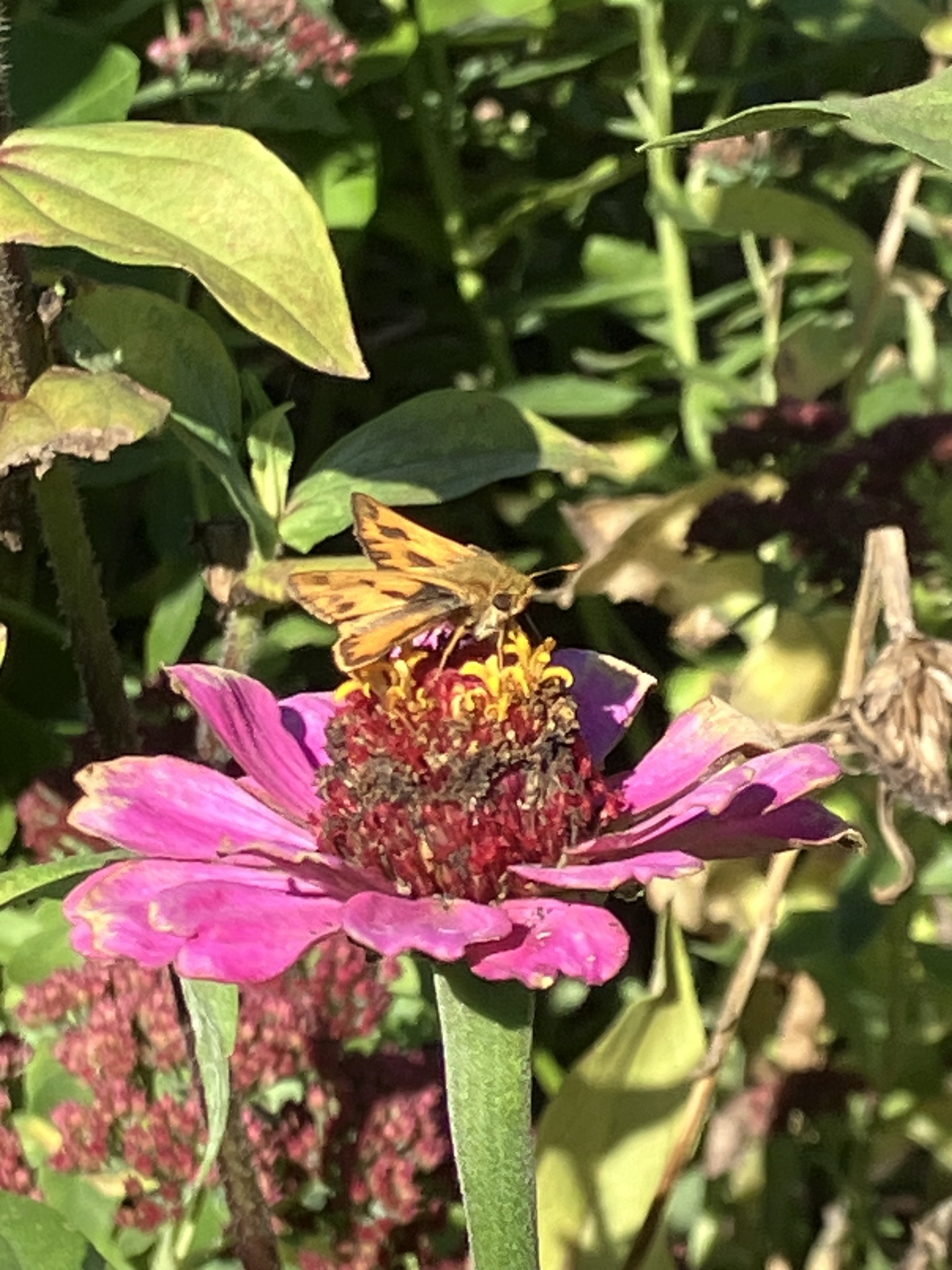 Hylephila phyleus | species | Zinnia | genus | visitsFlowersOf | Animalia | Arthropoda | Insecta | Lepidoptera | Hesperiidae | Hylephila | Plantae | Tracheophyta | Magnoliopsida | Asterales | Asteraceae | Zinnia | 40.204653 | -77.1996 | 2024 | 10 | 11 | http://creativecommons.org/licenses/by-nc/4.0/ | https://www.inaturalist.org/observations/247209213 | |