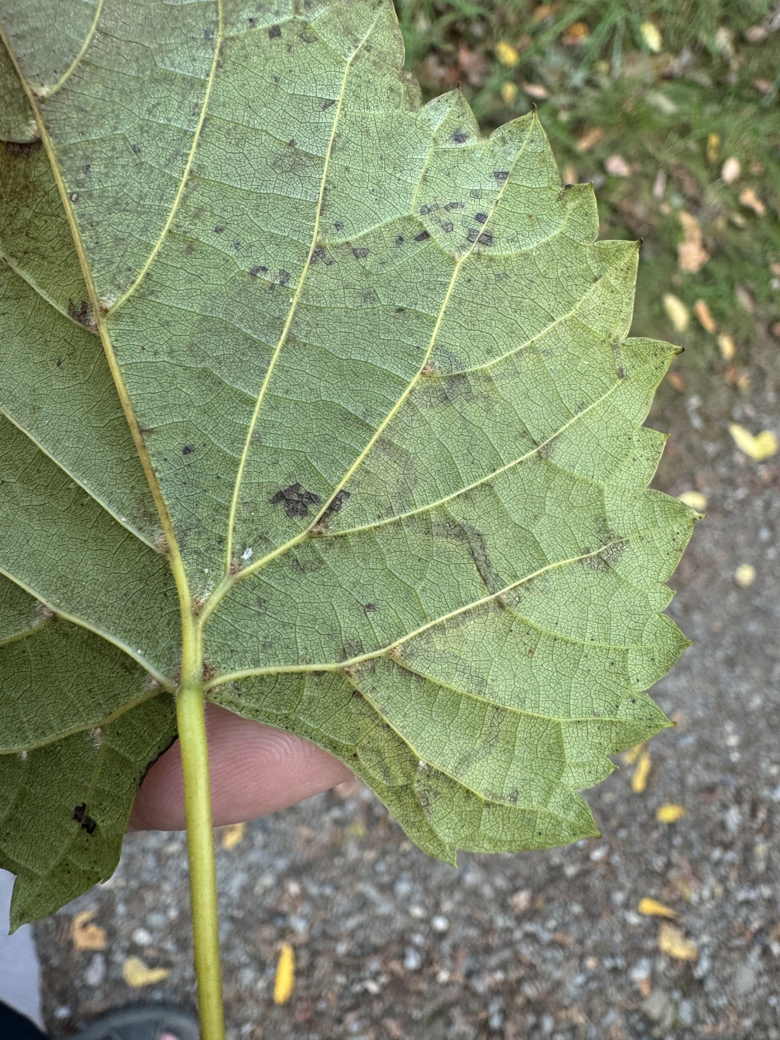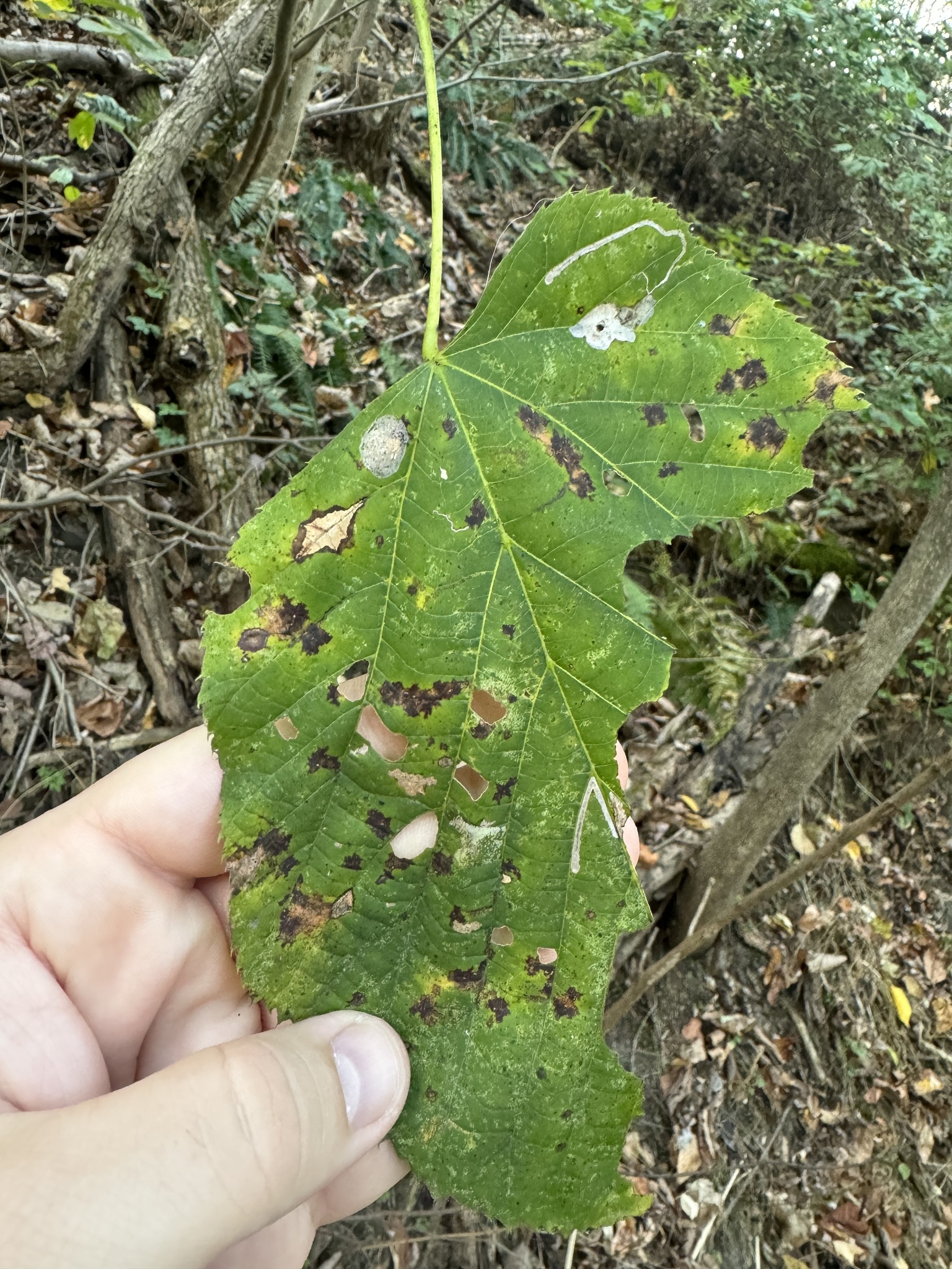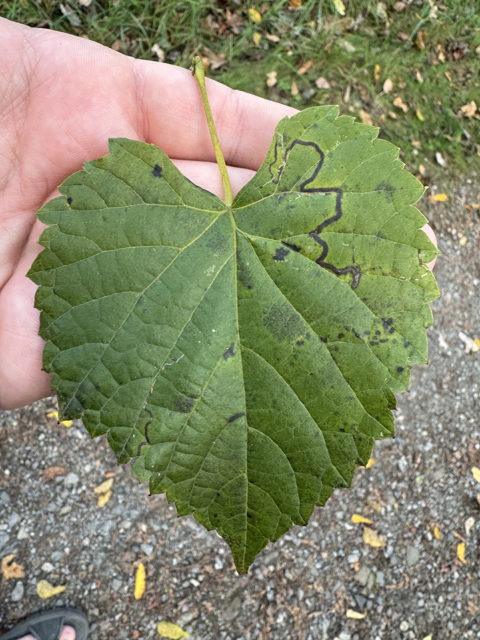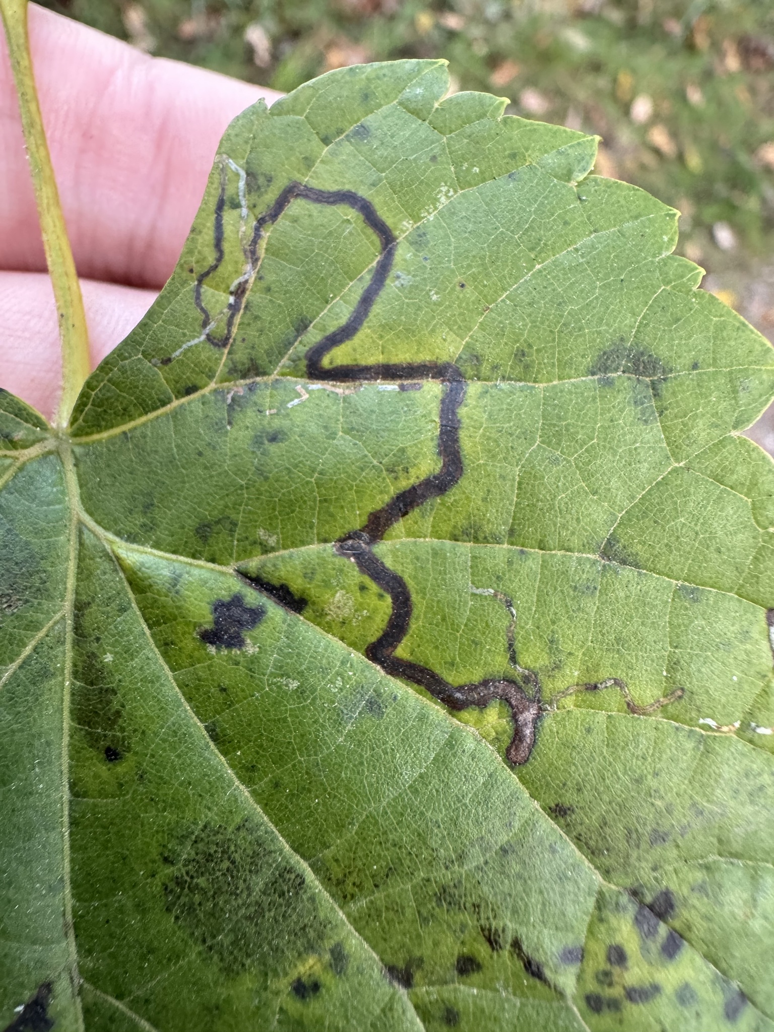 Phyllocnistis vitifoliella | species | Vitis | genus | interactsWith | Animalia | Arthropoda | Insecta | Lepidoptera | Gracillariidae | Phyllocnistis | Plantae | Tracheophyta | Magnoliopsida | Vitales | Vitaceae | Vitis | 40.98263 | -76.628692 | 2024 | 10 | 13 | http://creativecommons.org/licenses/by-nc/4.0/ | https://www.inaturalist.org/observations/247216142 | |