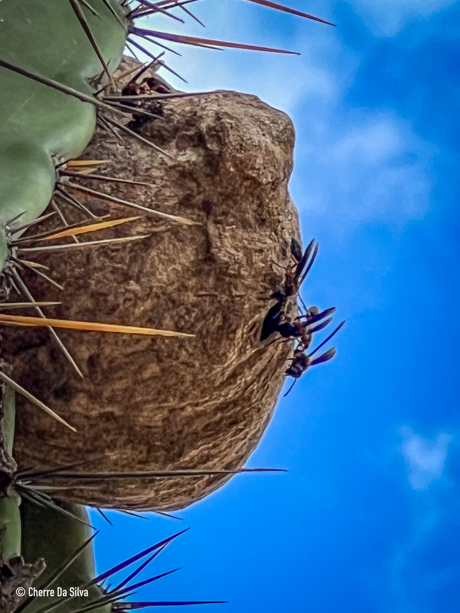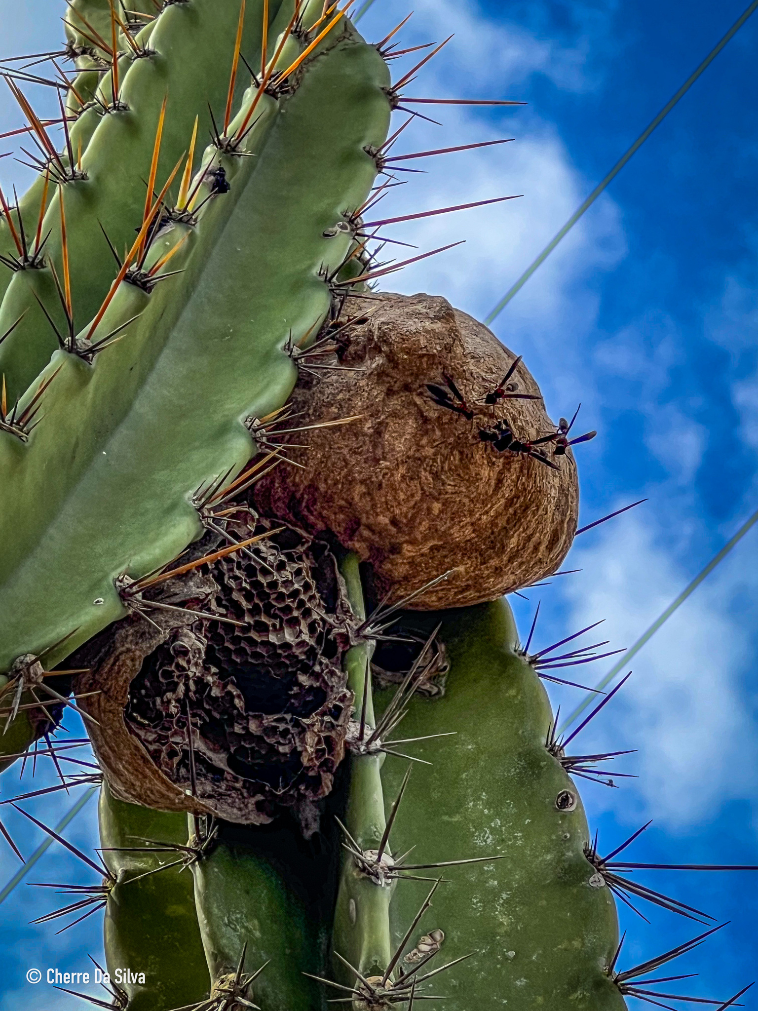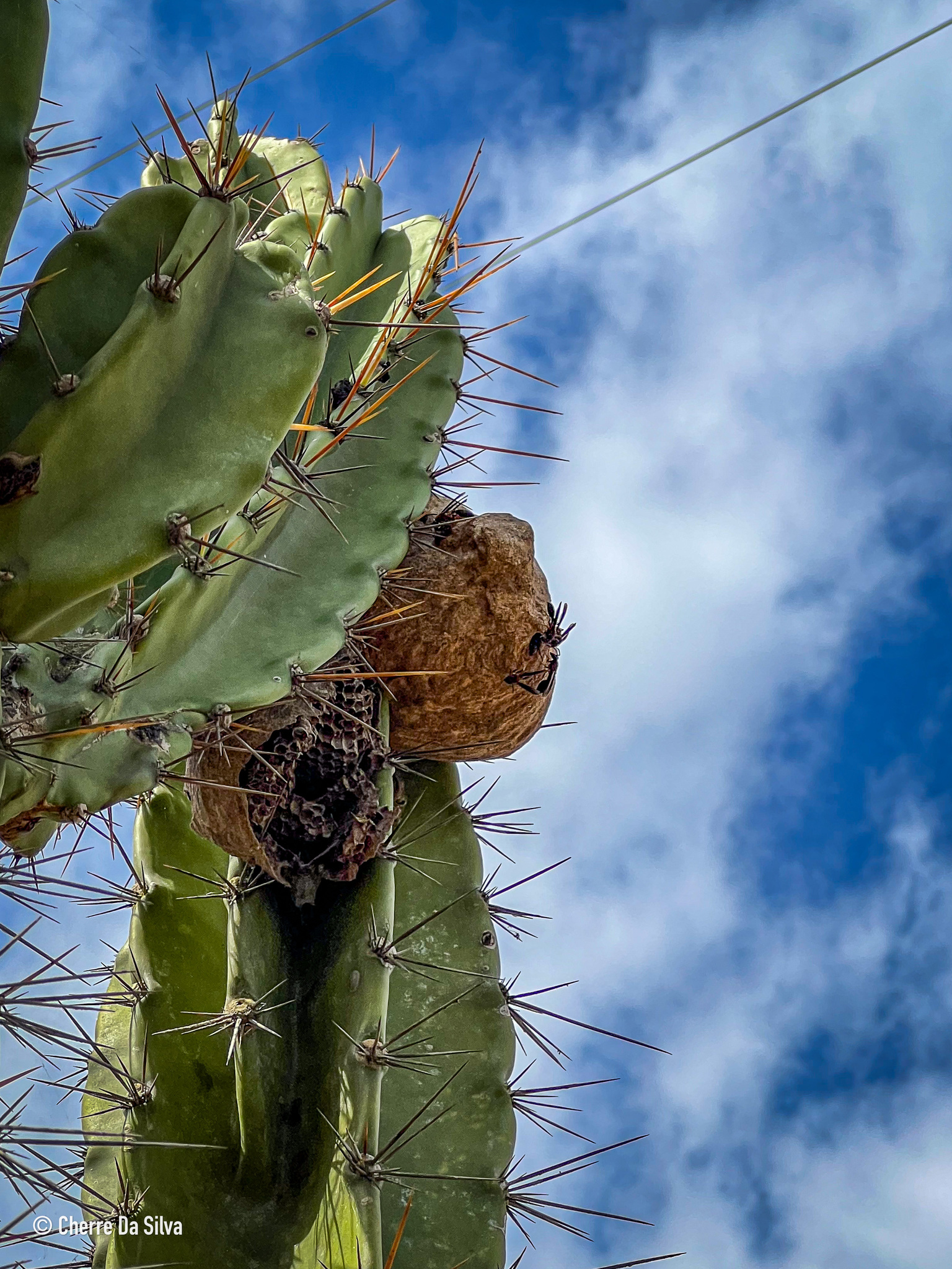 Polybia sericea | species | Cereus jamacaru | species | interactsWith | Animalia | Arthropoda | Insecta | Hymenoptera | Eumenidae | Polybia | Plantae | Tracheophyta | Magnoliopsida | Caryophyllales | Cactaceae | Cereus | -7.121944 | -35.528611 | 2023 | 11 | 20 | http://creativecommons.org/licenses/by-nc/4.0/ | https://www.inaturalist.org/observations/247132679 | |