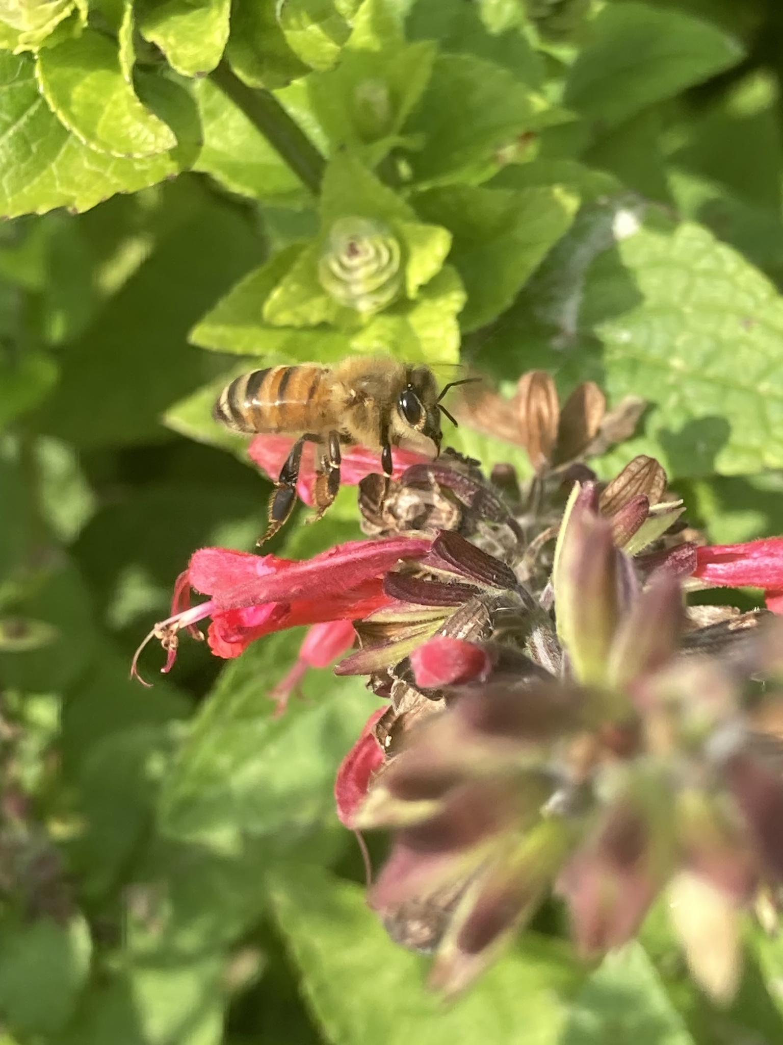 Apis mellifera | species | Salvia coccinea | species | visitsFlowersOf | Animalia | Arthropoda | Insecta | Hymenoptera | Apidae | Apis | Plantae | Tracheophyta | Magnoliopsida | Lamiales | Lamiaceae | Salvia | 40.204792 | -77.199592 | 2024 | 10 | 12 | http://creativecommons.org/licenses/by-nc/4.0/ | https://www.inaturalist.org/observations/247147289 | |