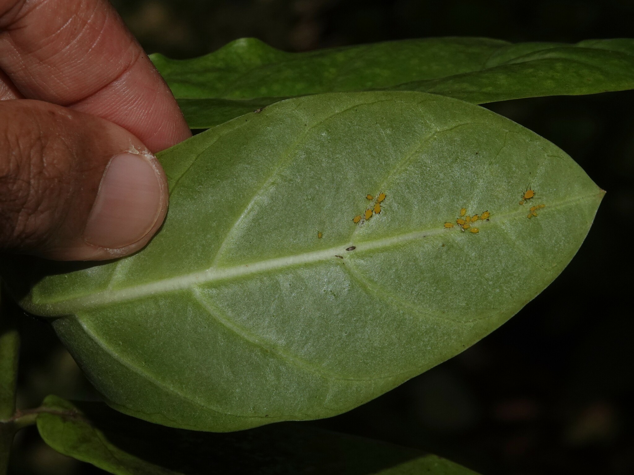 Aphis nerii | species | Calotropis | genus | interactsWith | Animalia | Arthropoda | Insecta | Hemiptera | Aphididae | Aphis | Plantae | Tracheophyta | Magnoliopsida | Gentianales | Apocynaceae | Calotropis | 19.163074 | 72.892128 | 2024 | 10 | 12 | http://creativecommons.org/licenses/by-nc/4.0/ | https://www.inaturalist.org/observations/247148327 | |