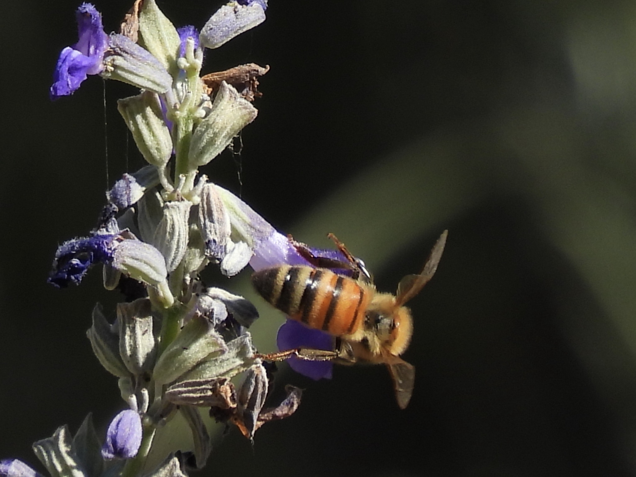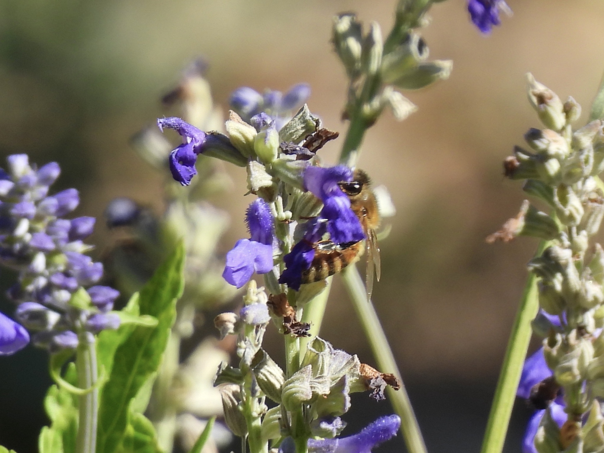 Apis mellifera | species | Salvia farinacea | species | eats | Animalia | Arthropoda | Insecta | Hymenoptera | Apidae | Apis | Plantae | Tracheophyta | Magnoliopsida | Lamiales | Lamiaceae | Salvia | 33.023955 | -97.14572 | 2024 | 10 | 13 | http://creativecommons.org/licenses/by-nc/4.0/ | https://www.inaturalist.org/observations/247166309 | |