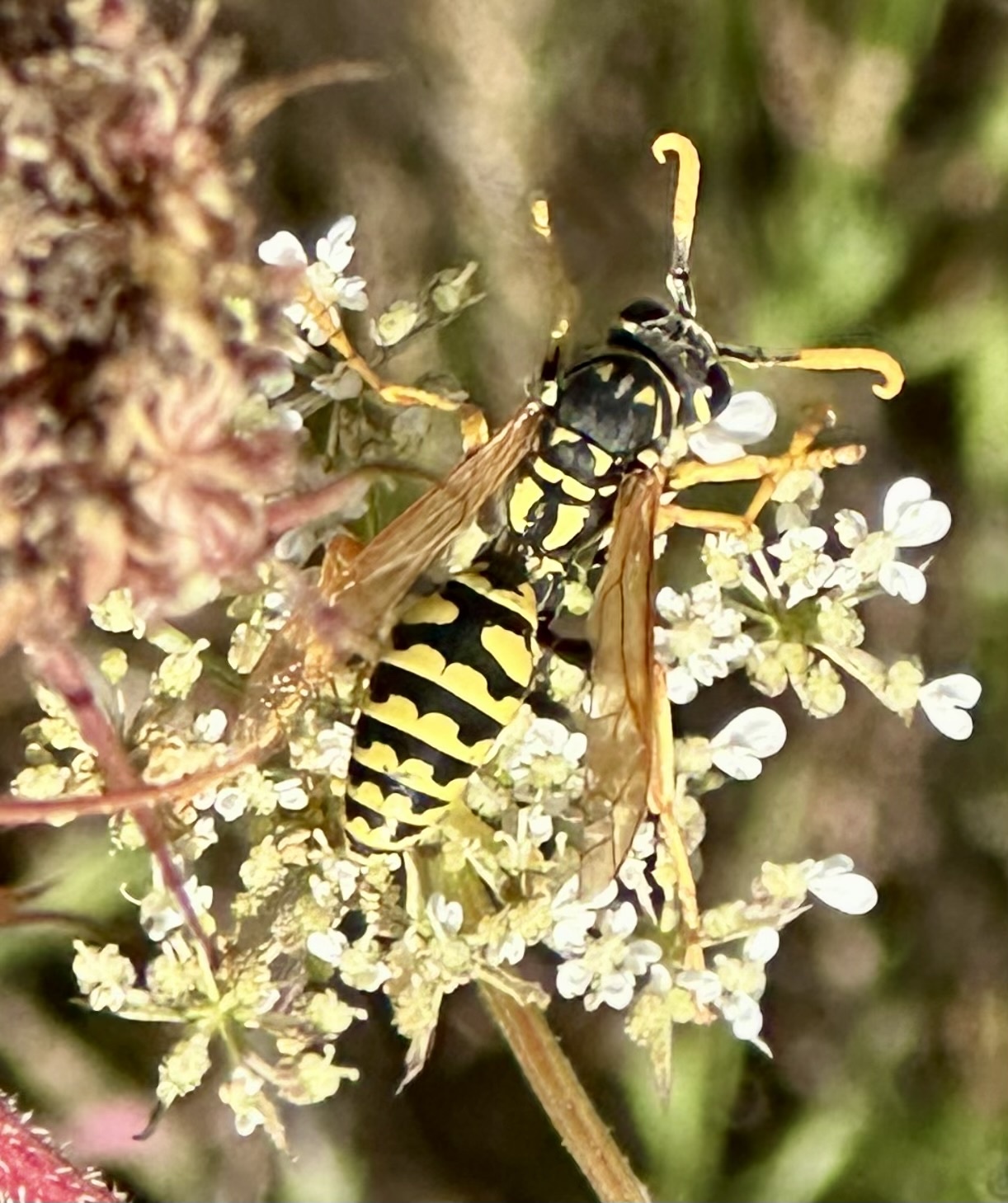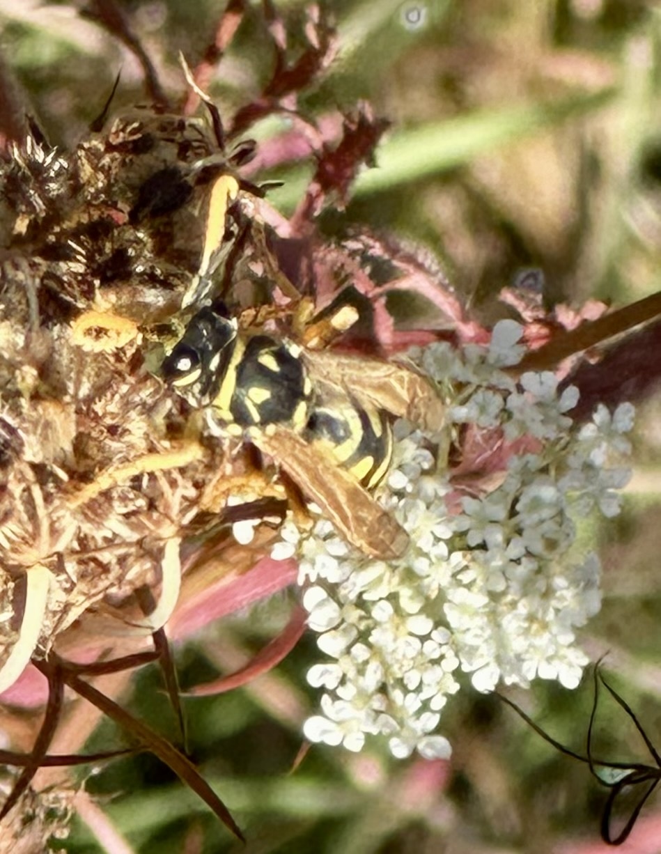Polistes dominula | species | Daucus carota | species | visits | Animalia | Arthropoda | Insecta | Hymenoptera | Eumenidae | Polistes | Plantae | Tracheophyta | Magnoliopsida | Apiales | Apiaceae | Daucus | 47.029883 | -122.763237 | 2024 | 10 | 13 | http://creativecommons.org/licenses/by-nc/4.0/ | https://www.inaturalist.org/observations/247169009 | |