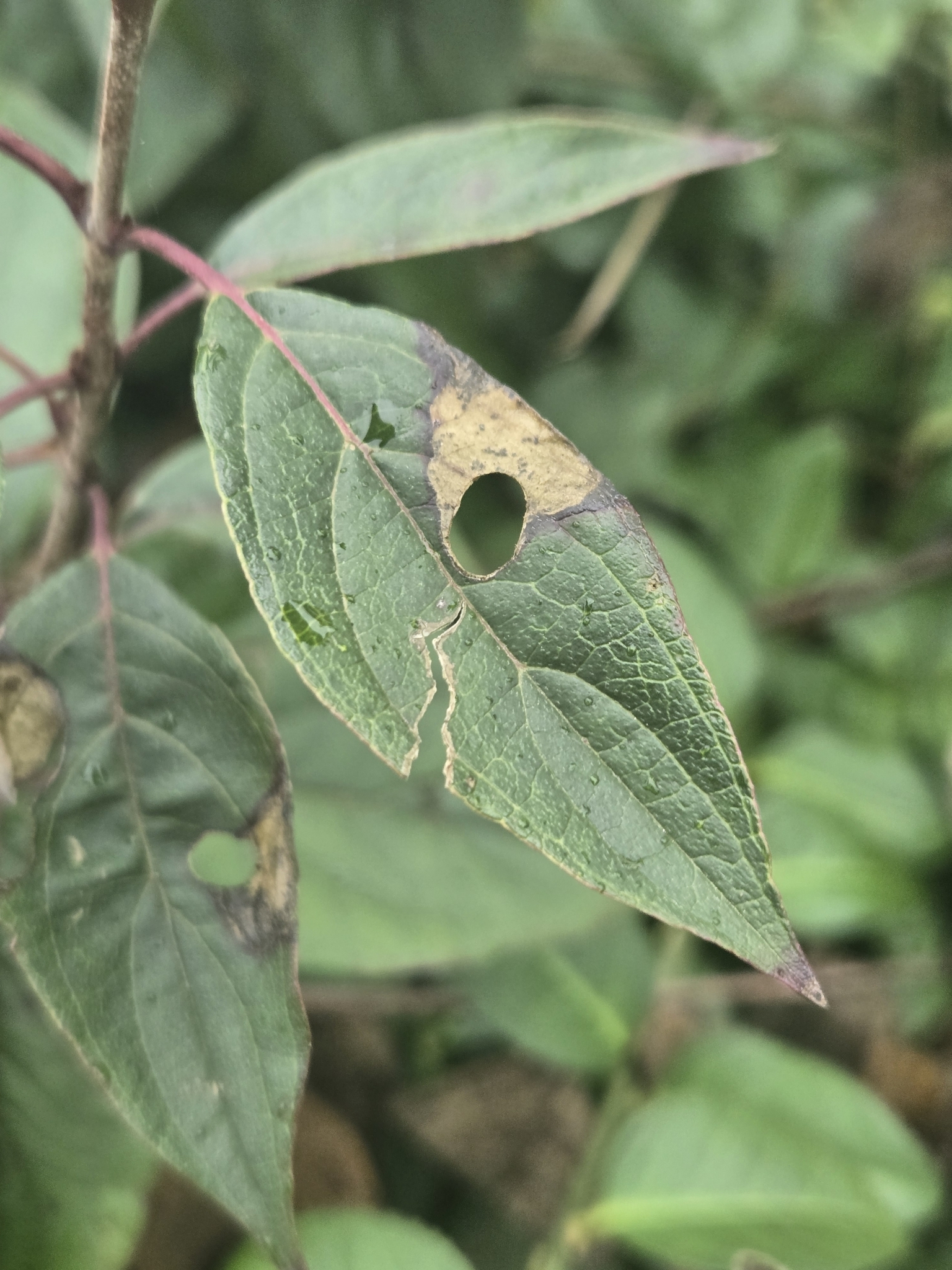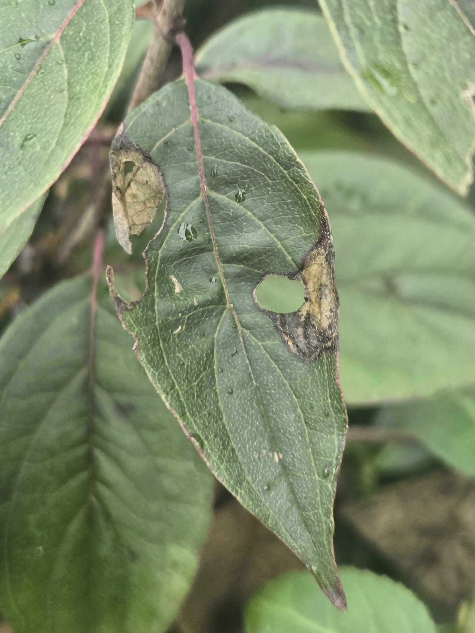 Antispila freemani | species | Cornus | genus | interactsWith | Animalia | Arthropoda | Insecta | Lepidoptera | Heliozelidae | Antispila | Plantae | Tracheophyta | Magnoliopsida | Cornales | Cornaceae | Cornus | 41.633651 | -80.149335 | 2024 | 10 | 13 | http://creativecommons.org/licenses/by-nc/4.0/ | https://www.inaturalist.org/observations/247171412 | |