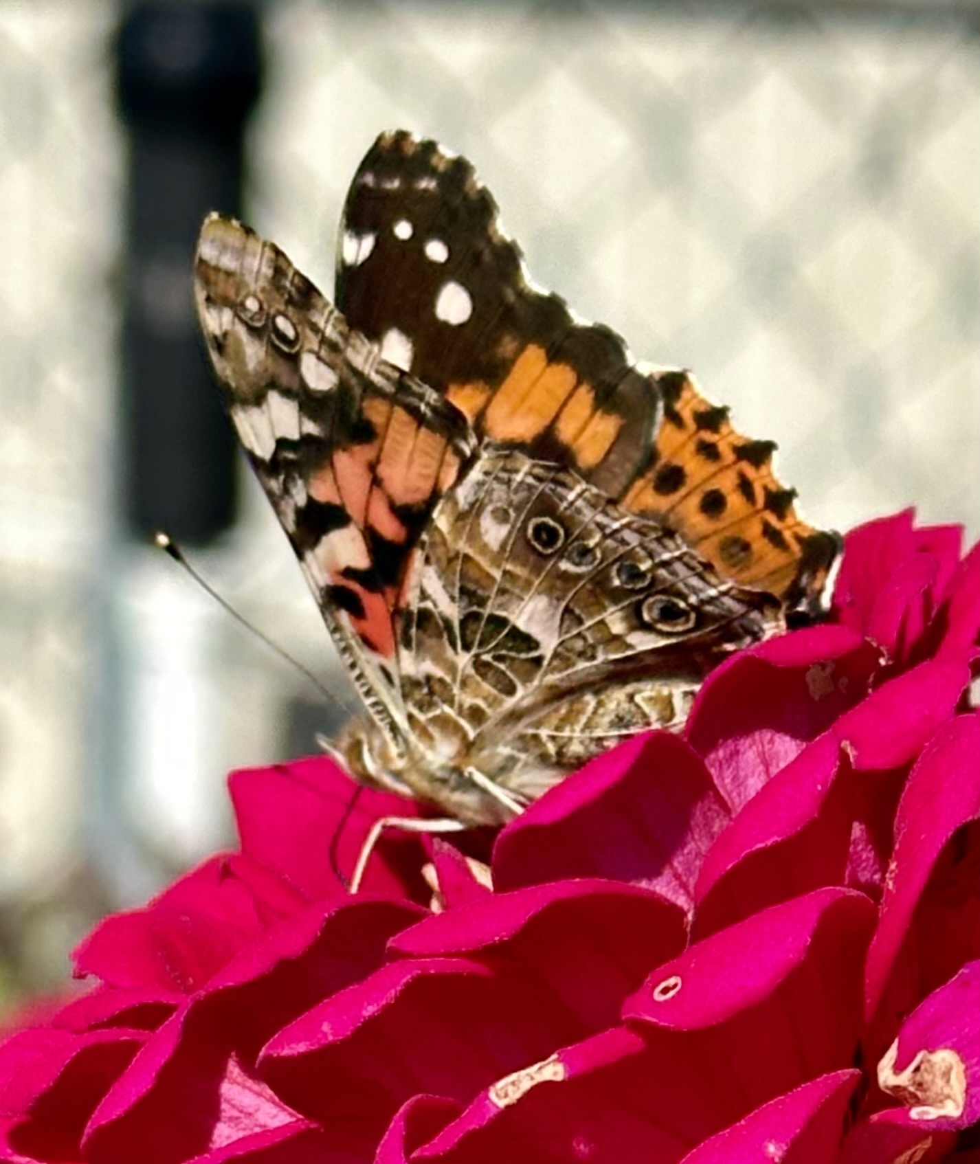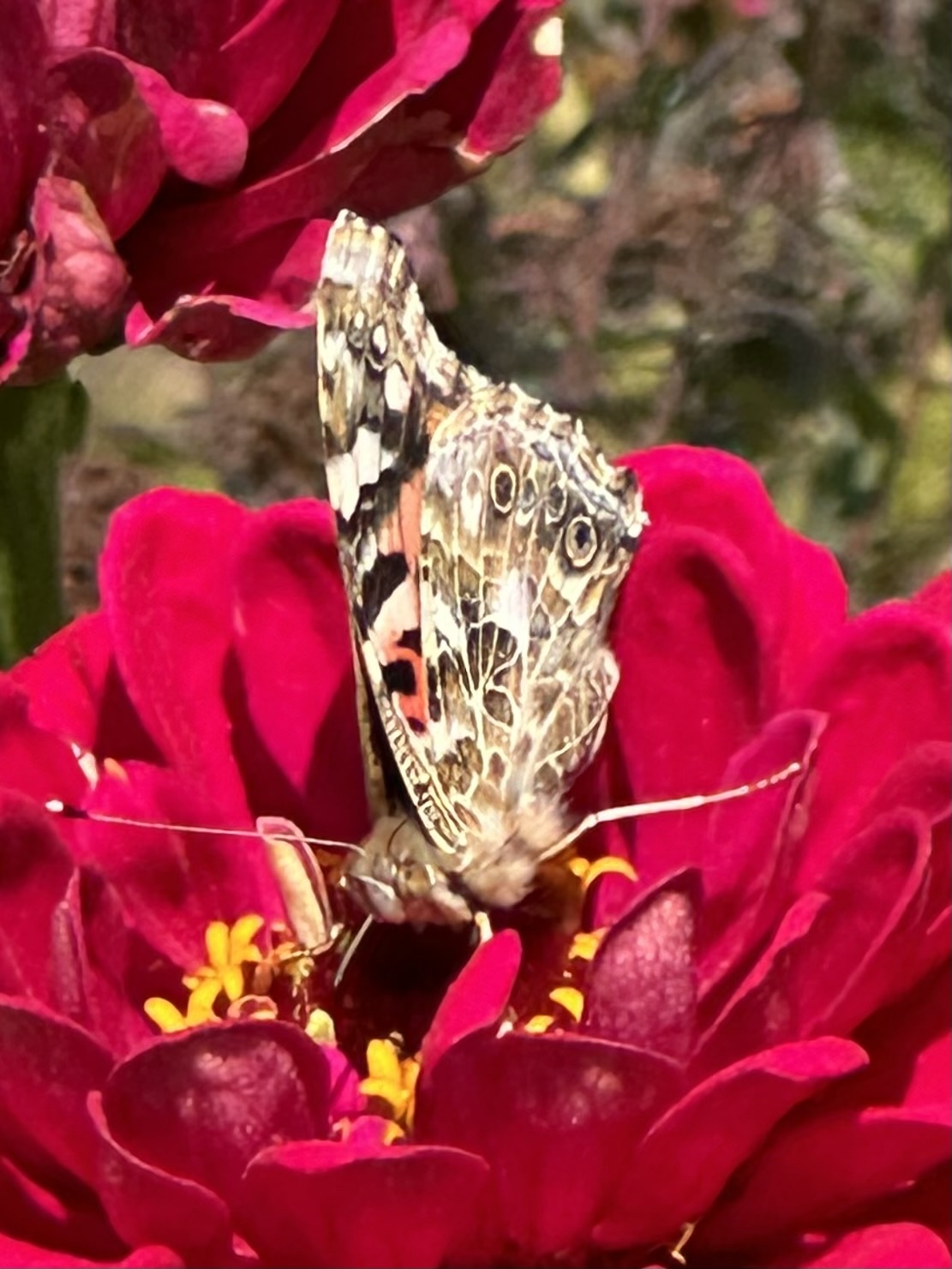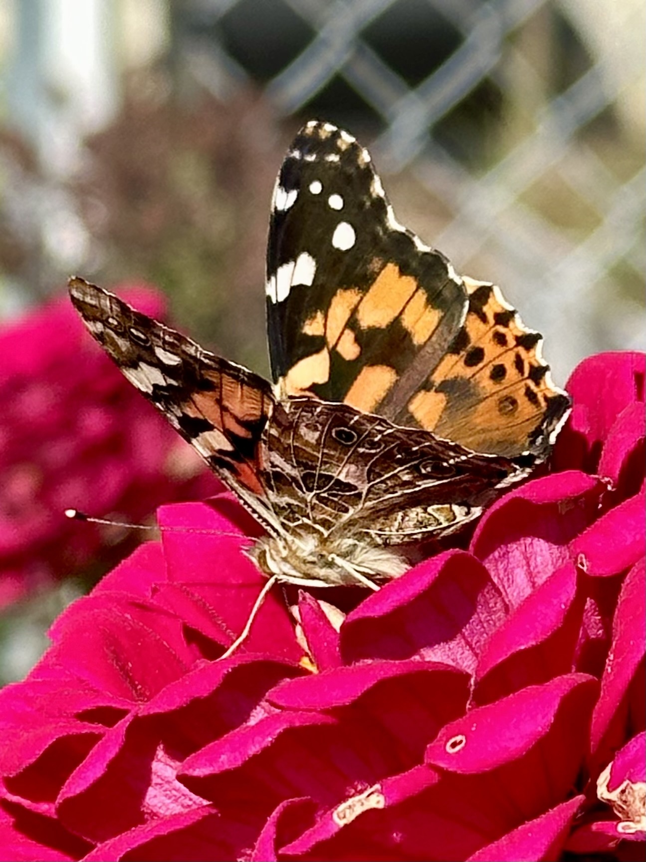 Vanessa cardui | species | Zinnia | genus | visitsFlowersOf | Animalia | Arthropoda | Insecta | Lepidoptera | Nymphalidae | Vanessa | Plantae | Tracheophyta | Magnoliopsida | Asterales | Asteraceae | Zinnia | 39.132861 | -74.830387 | 2024 | 10 | 12 | http://creativecommons.org/licenses/by-nc/4.0/ | https://www.inaturalist.org/observations/247108852 | |