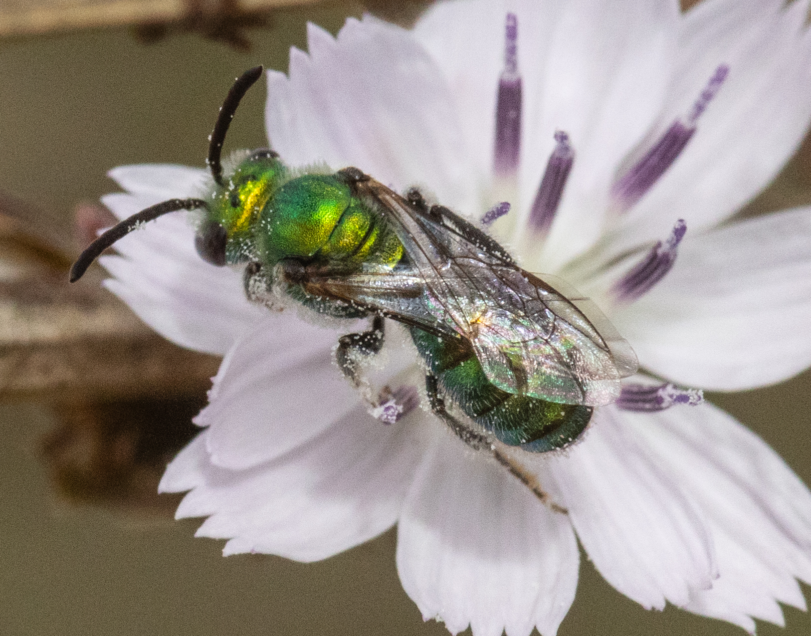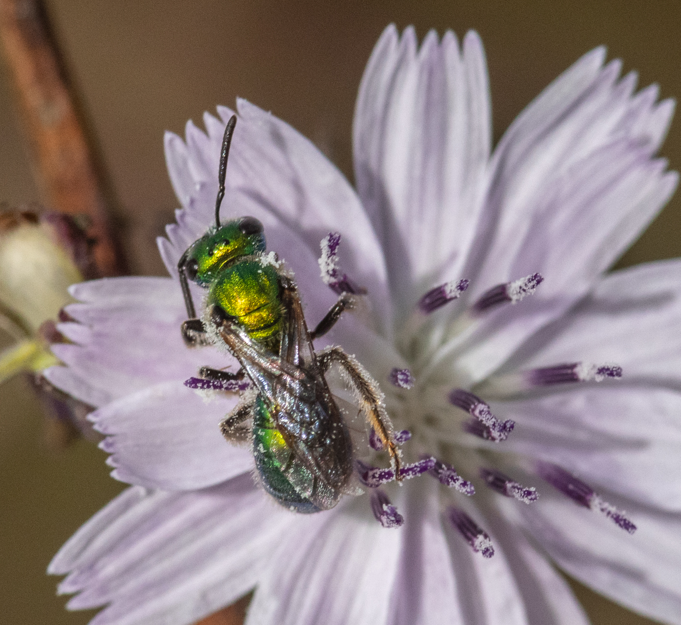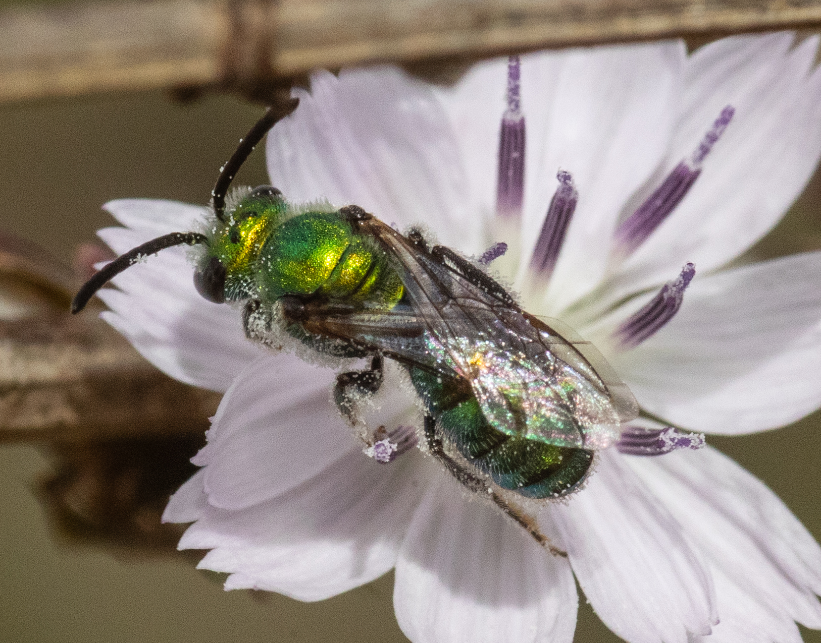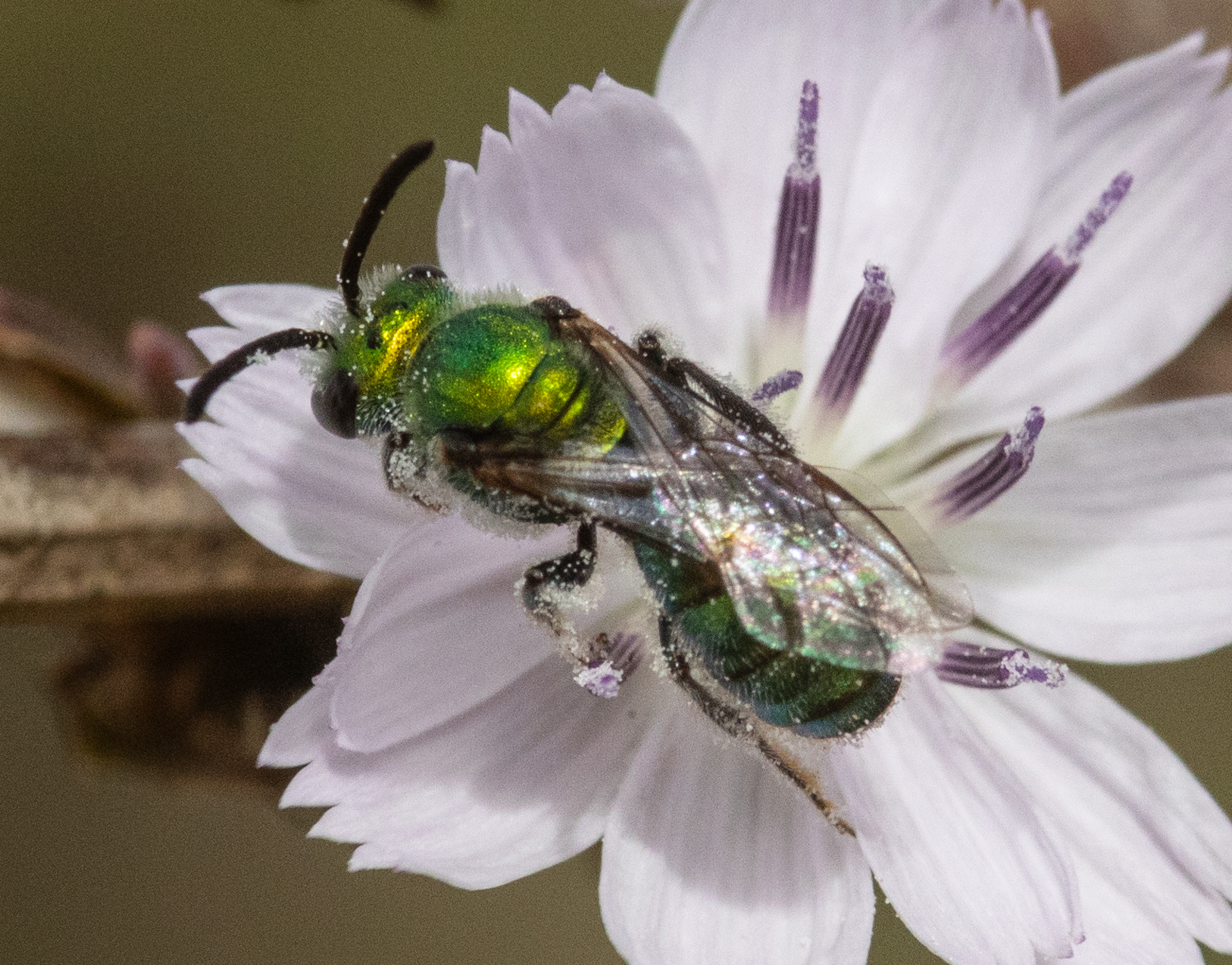 Perdita hirticeps | species | Stephanomeria diegensis | species | visitsFlowersOf | Animalia | Arthropoda | Insecta | Hymenoptera | Andrenidae | Perdita | Plantae | Tracheophyta | Magnoliopsida | Asterales | Asteraceae | Stephanomeria | 32.669265 | -117.242001 | 2024 | 10 | 12 | http://creativecommons.org/licenses/by-nc/4.0/ | https://www.inaturalist.org/observations/247055261 | |