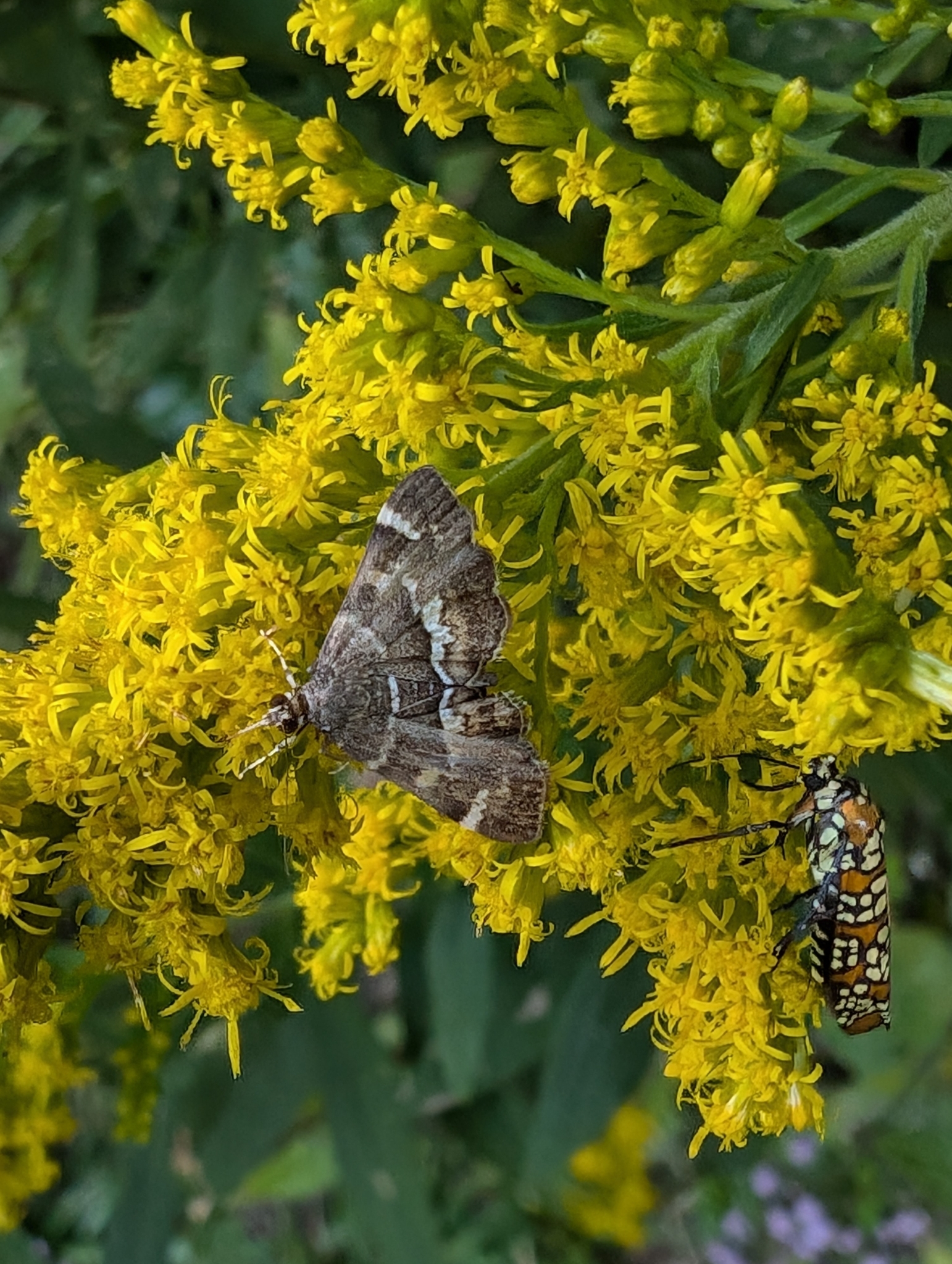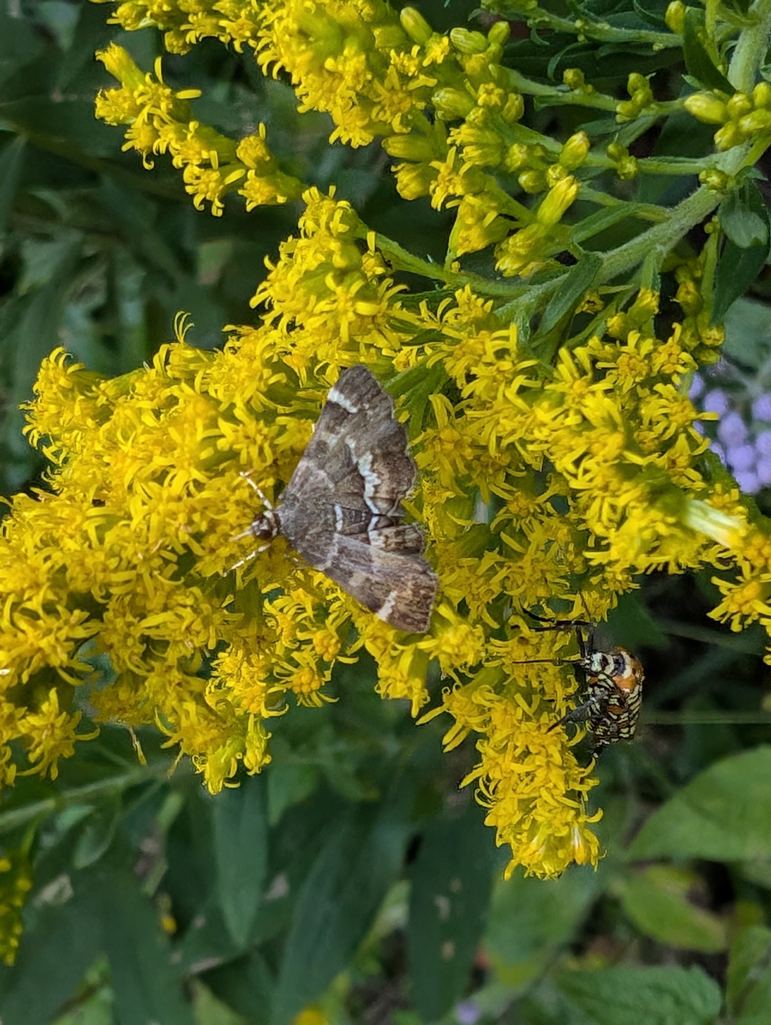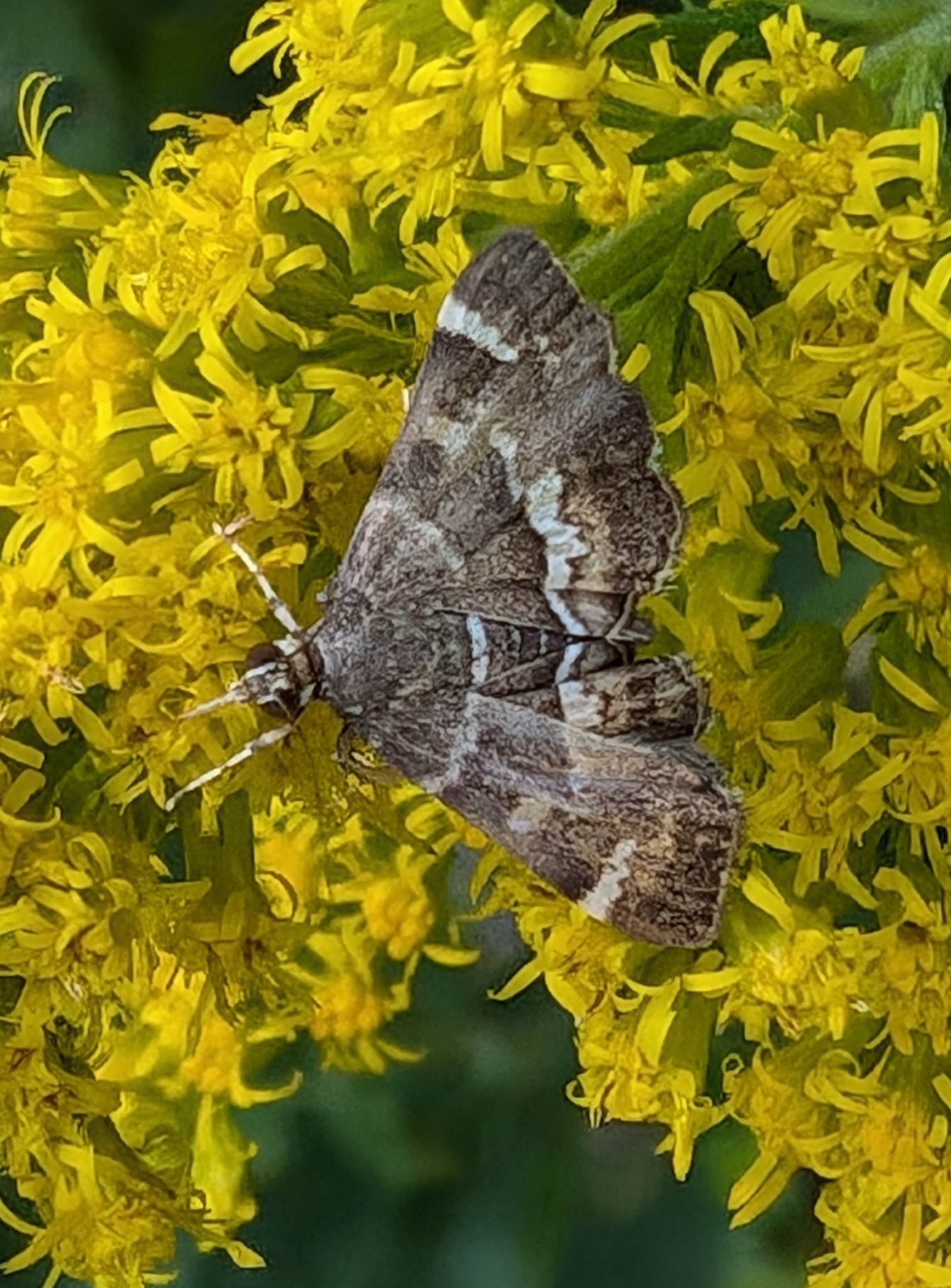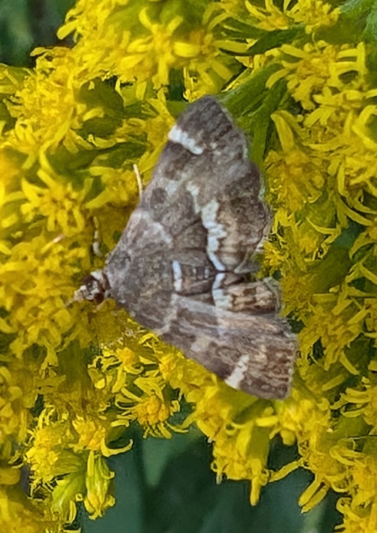 Hymenia perspectalis | species | Solidago | genus | interactsWith | Animalia | Arthropoda | Insecta | Lepidoptera | Crambidae | Hymenia | Plantae | Tracheophyta | Magnoliopsida | Asterales | Asteraceae | Solidago | 36.873142 | -76.126417 | 2024 | 10 | 12 | http://creativecommons.org/licenses/by-nc/4.0/ | https://www.inaturalist.org/observations/247079816 | |