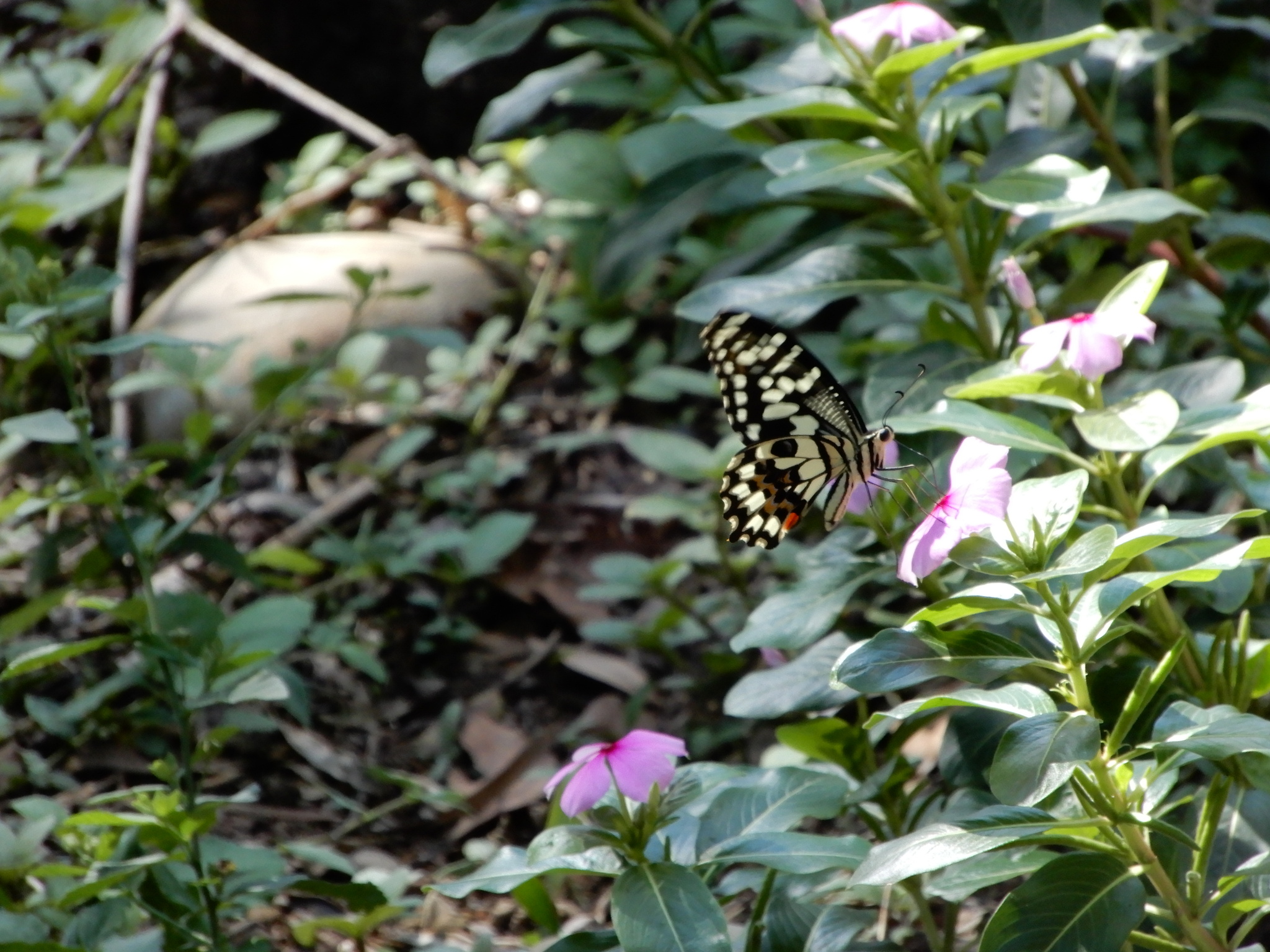 Papilio demoleus | species | Catharanthus roseus | species | visitsFlowersOf | Animalia | Arthropoda | Insecta | Lepidoptera | Papilionidae | Papilio | Plantae | Tracheophyta | Magnoliopsida | Gentianales | Apocynaceae | Catharanthus | 25.0056 | 121.331494 | 2024 | 10 | 6 | http://creativecommons.org/licenses/by-nc/4.0/ | https://www.inaturalist.org/observations/247098779 | |