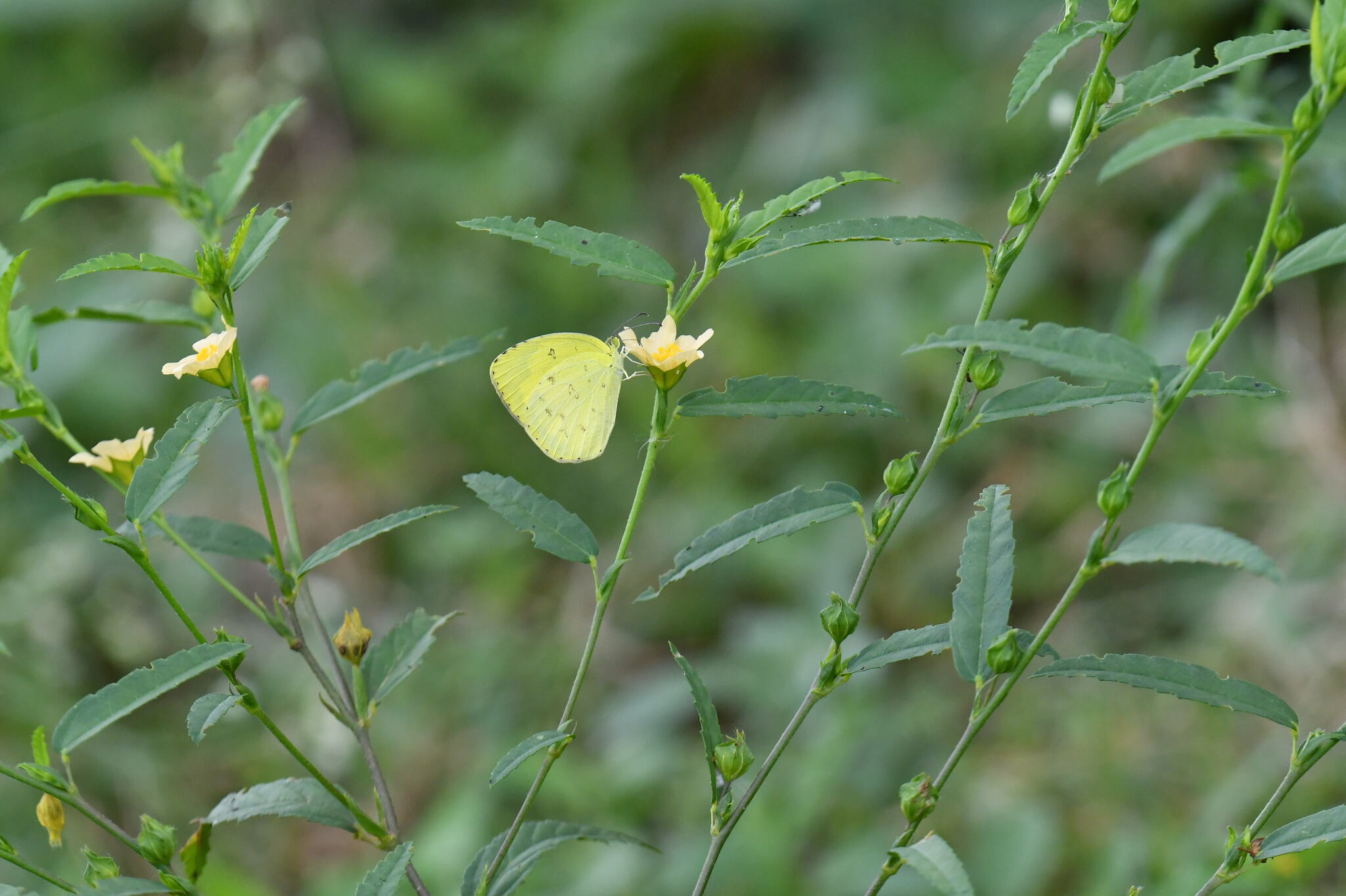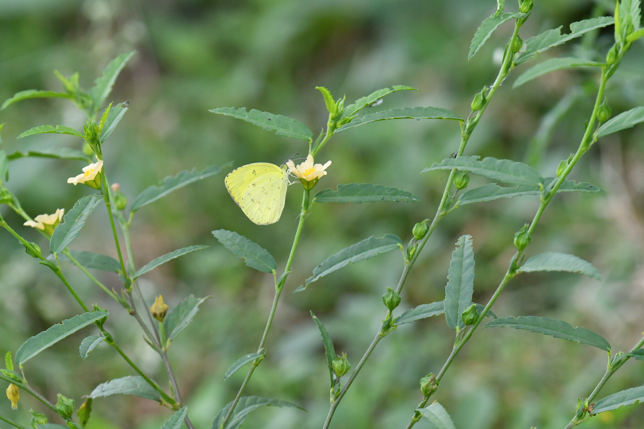 Eurema hecabe | species | Sida acuta | species | eats | Animalia | Arthropoda | Insecta | Lepidoptera | Pieridae | Eurema | Plantae | Tracheophyta | Magnoliopsida | Malvales | Malvaceae | Sida | 17.321091 | 78.393821 | 2024 | 10 | 12 | http://creativecommons.org/licenses/by-nc/4.0/ | https://www.inaturalist.org/observations/247089035 | |