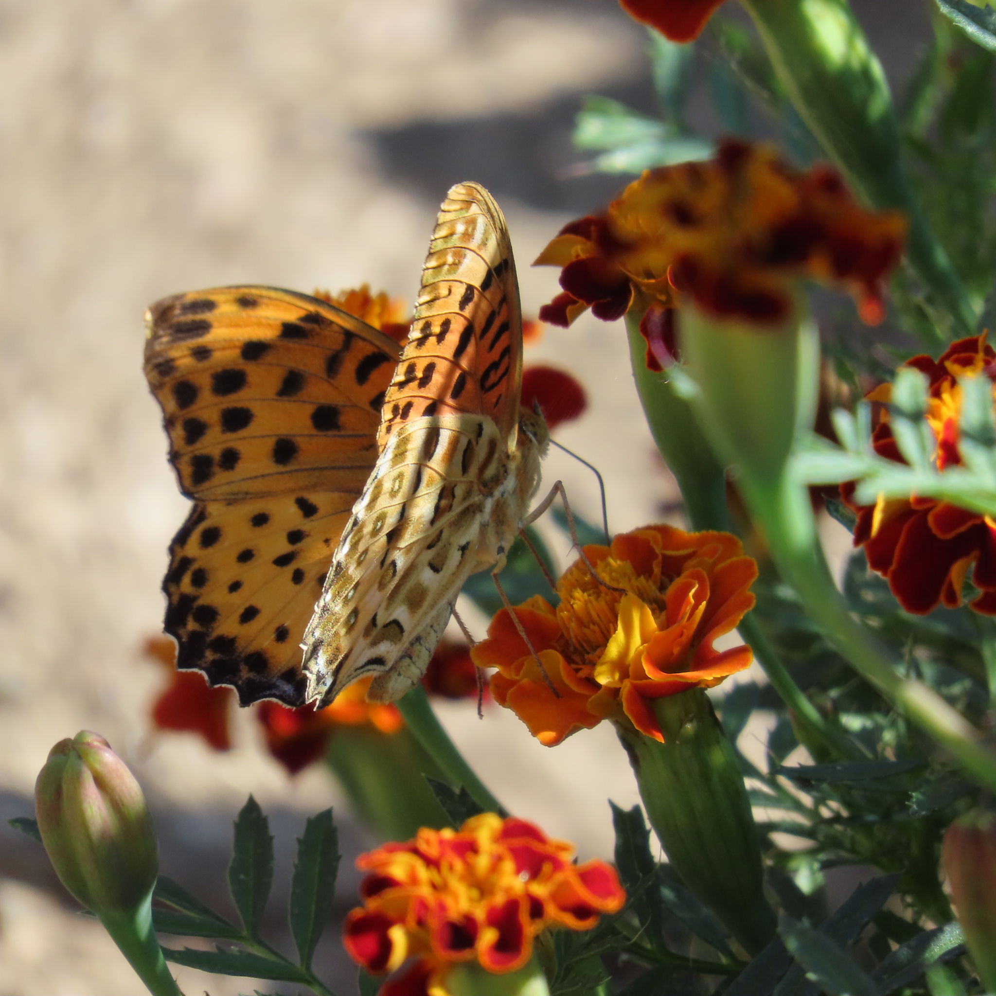 Argynnis hyperbius | species | Tagetes | genus | eats | Animalia | Arthropoda | Insecta | Lepidoptera | Nymphalidae | Argynnis | Plantae | Tracheophyta | Magnoliopsida | Asterales | Asteraceae | Tagetes | 35.667476 | 127.854196 | 2024 | 10 | 11 | http://creativecommons.org/licenses/by-nc/4.0/ | https://www.inaturalist.org/observations/247102263 | |