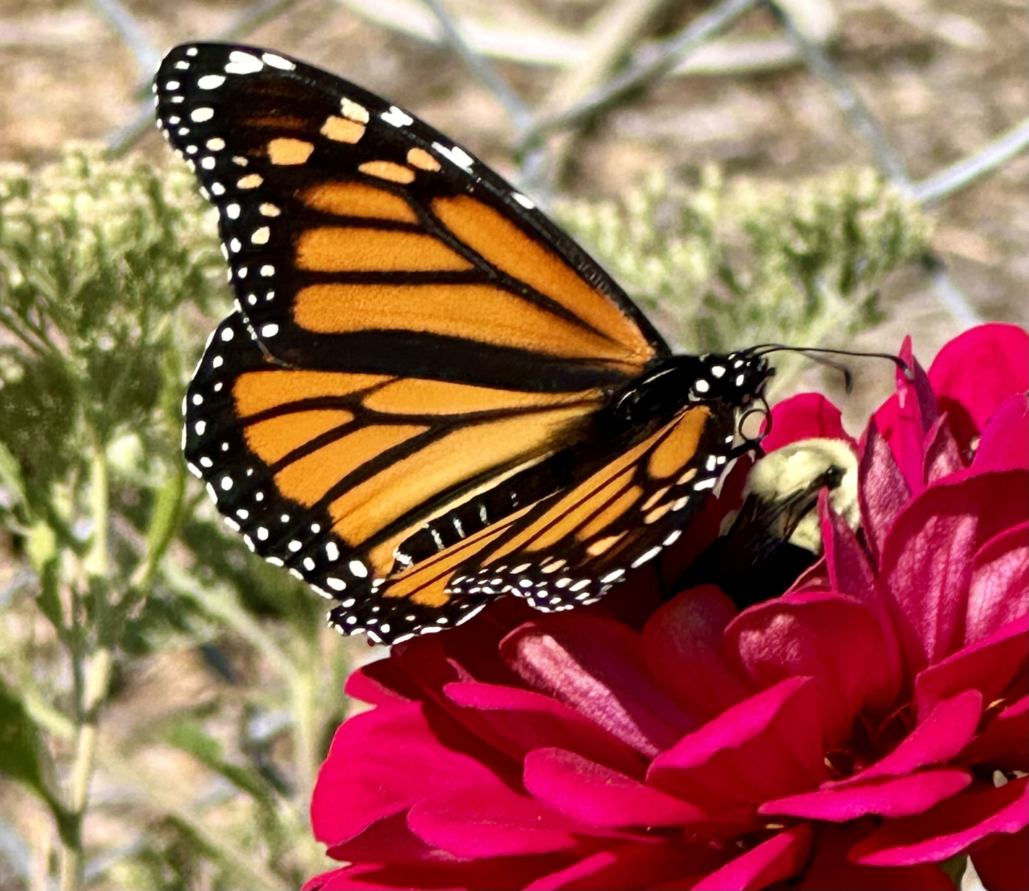 Danaus plexippus | species | Zinnia | genus | visitsFlowersOf | Animalia | Arthropoda | Insecta | Lepidoptera | Nymphalidae | Danaus | Plantae | Tracheophyta | Magnoliopsida | Asterales | Asteraceae | Zinnia | 39.132855 | -74.830376 | 2024 | 10 | 12 | http://creativecommons.org/licenses/by-nc/4.0/ | https://www.inaturalist.org/observations/247108585 | |