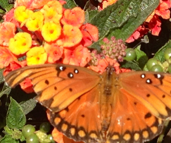 Dione vanillae | species | Lantana | genus | visitsFlowersOf | Animalia | Arthropoda | Insecta | Lepidoptera | Nymphalidae | Dione | Plantae | Tracheophyta | Magnoliopsida | Lamiales | Verbenaceae | Lantana | 37.762487 | -122.436438 | 2013 | 11 | 17 | http://creativecommons.org/licenses/by-nc/4.0/ | https://www.inaturalist.org/observations/460447 | |