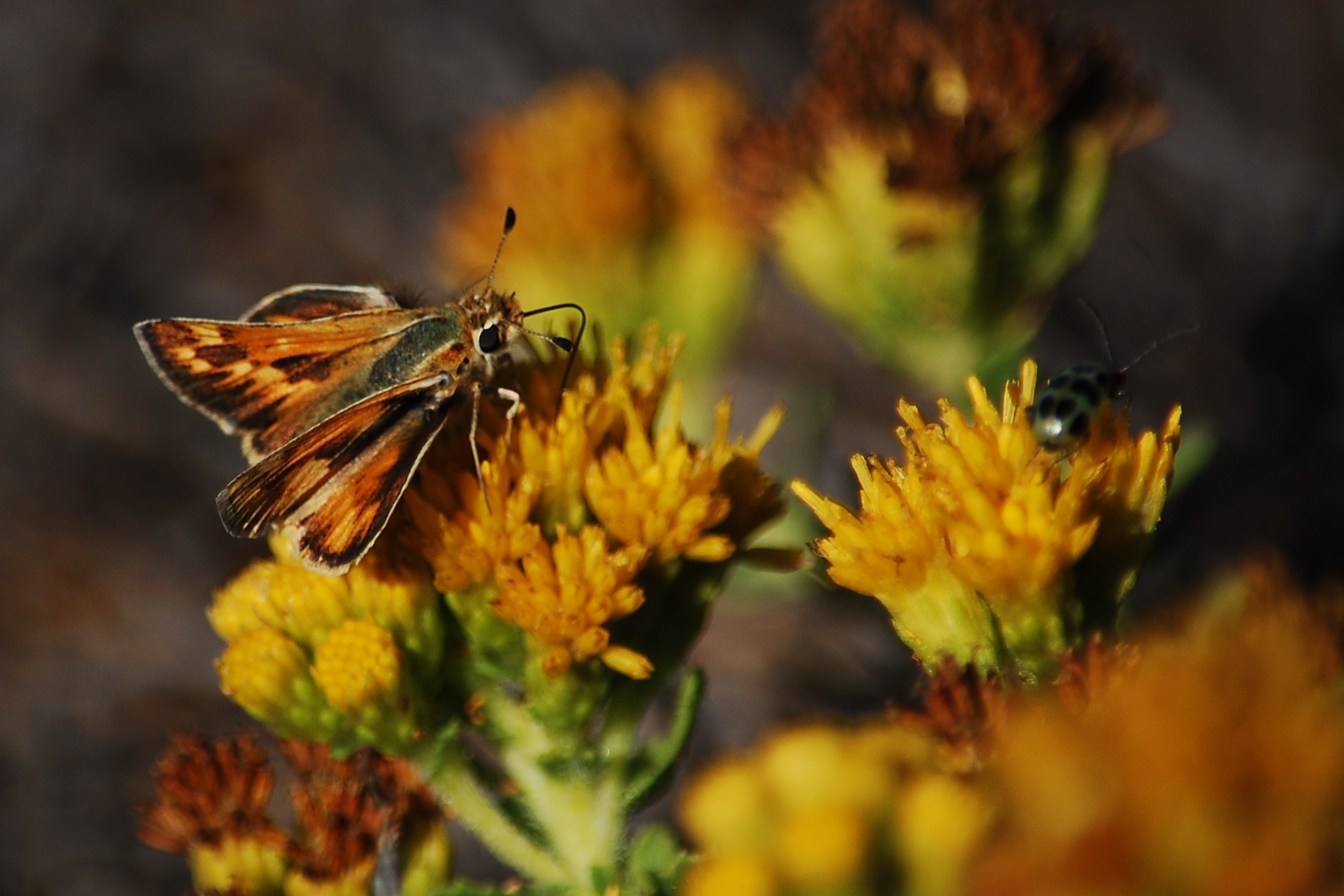 Polites sabuleti | species | Isocoma menziesii | species | visitsFlowersOf | Animalia | Arthropoda | Insecta | Lepidoptera | Hesperiidae | Polites | Plantae | Tracheophyta | Magnoliopsida | Asterales | Asteraceae | Isocoma | 35.540433 | -121.092607 | 2013 | 10 | 4 | http://creativecommons.org/licenses/by-nc/4.0/ | https://www.inaturalist.org/observations/418384 | |