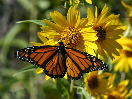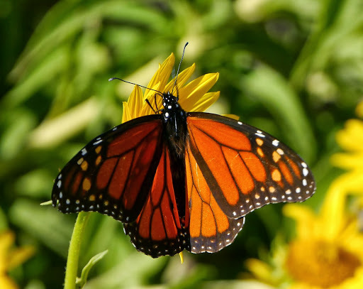 Danaus plexippus | species | Helianthus maximiliani | species | interactsWith | Animalia | Arthropoda | Insecta | Lepidoptera | Nymphalidae | Danaus | Plantae | Tracheophyta | Magnoliopsida | Asterales | Asteraceae | Helianthus | 32.885323 | -97.282128 | 2013 | 10 | 6 | http://creativecommons.org/licenses/by-nc/4.0/ | https://www.inaturalist.org/observations/420917 | |