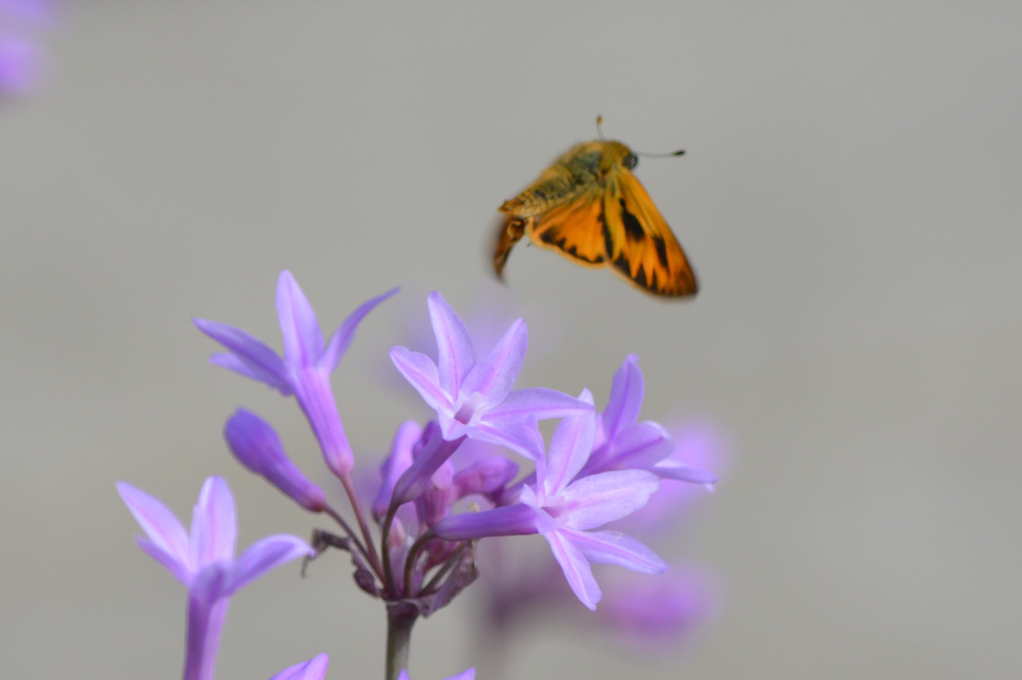 Hylephila phyleus | species | Tulbaghia violacea | species | visitsFlowersOf | Animalia | Arthropoda | Insecta | Lepidoptera | Hesperiidae | Hylephila | Plantae | Tracheophyta | Liliopsida | Asparagales | Amaryllidaceae | Tulbaghia | 38.134514 | -122.573631 | 2013 | 10 | 7 | http://creativecommons.org/licenses/by-nc-sa/4.0/ | https://www.inaturalist.org/observations/421704 | |