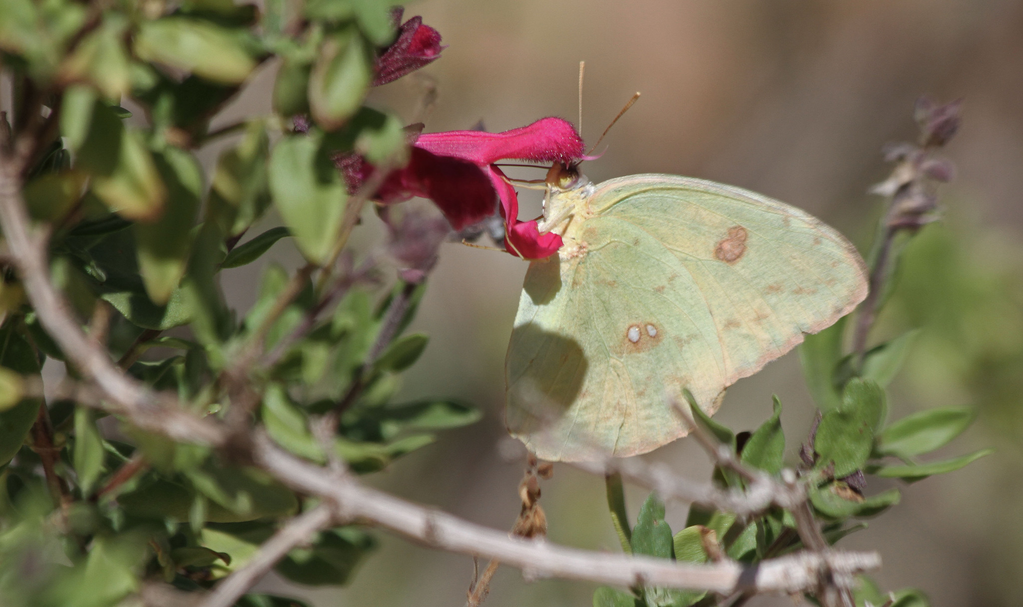 Phoebis sennae | species | Salvia greggii | species | visitsFlowersOf | Animalia | Arthropoda | Insecta | Lepidoptera | Pieridae | Phoebis | Plantae | Tracheophyta | Magnoliopsida | Lamiales | Lamiaceae | Salvia | 32.027601 | -102.139889 | 2013 | 10 | 6 | http://creativecommons.org/licenses/by-nc/4.0/ | https://www.inaturalist.org/observations/427028 | |