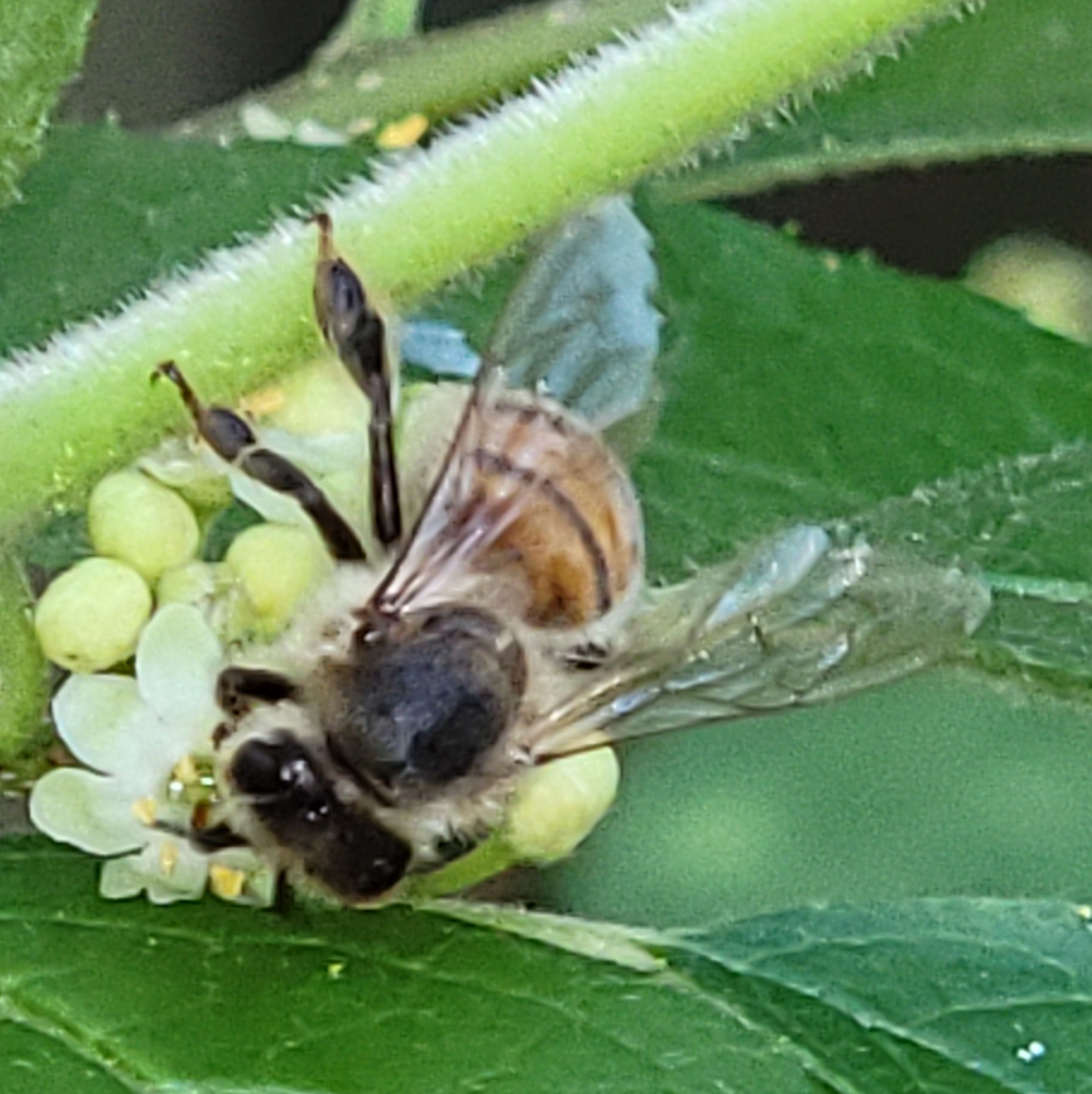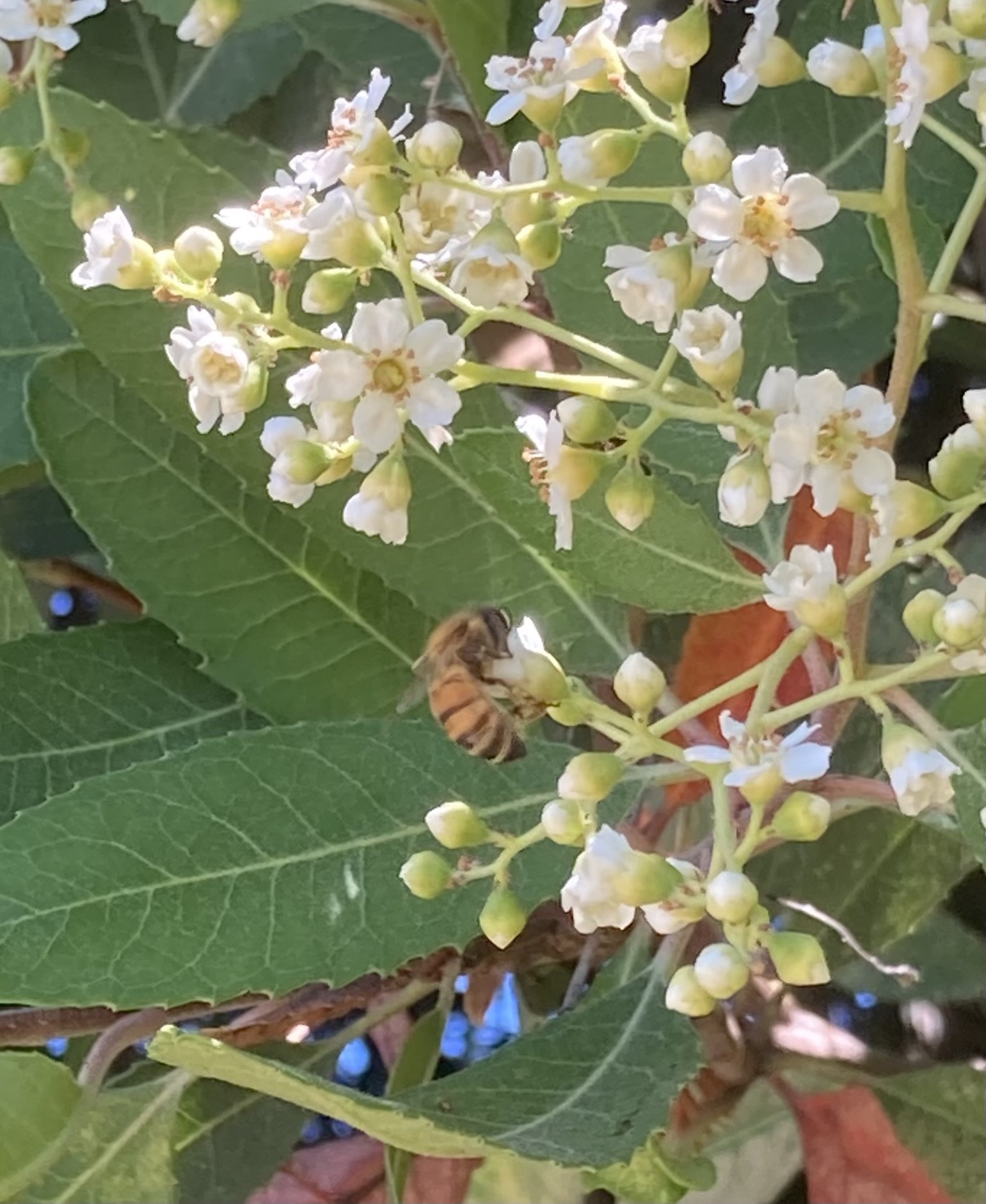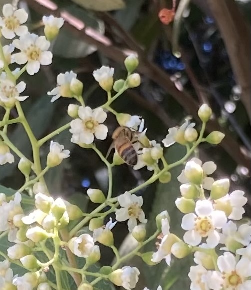 Apis mellifera | species | Heteromeles arbutifolia | species | eats | Animalia | Arthropoda | Insecta | Hymenoptera | Apidae | Apis | Plantae | Tracheophyta | Magnoliopsida | Rosales | Rosaceae | Heteromeles | 37.216848 | -121.971413 | 2021 | 6 | 15 | http://creativecommons.org/licenses/by-nc/4.0/ | https://www.inaturalist.org/observations/83207874 | |