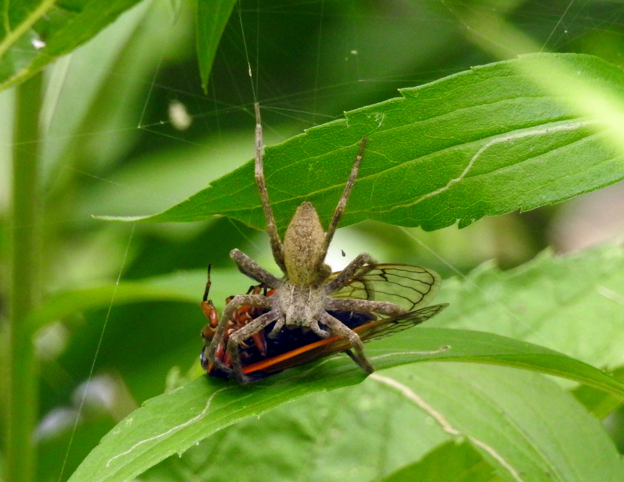 Pisaurina mira | species | Magicicada | genus | preysOn | Animalia | Arthropoda | Arachnida | Araneae | Pisauridae | Pisaurina | Animalia | Arthropoda | Insecta | Hemiptera | Cicadidae | Magicicada | 39.068027 | -77.361195 | 2021 | 6 | 13 | http://creativecommons.org/licenses/by-nc/4.0/ | https://www.inaturalist.org/observations/83208881 | |