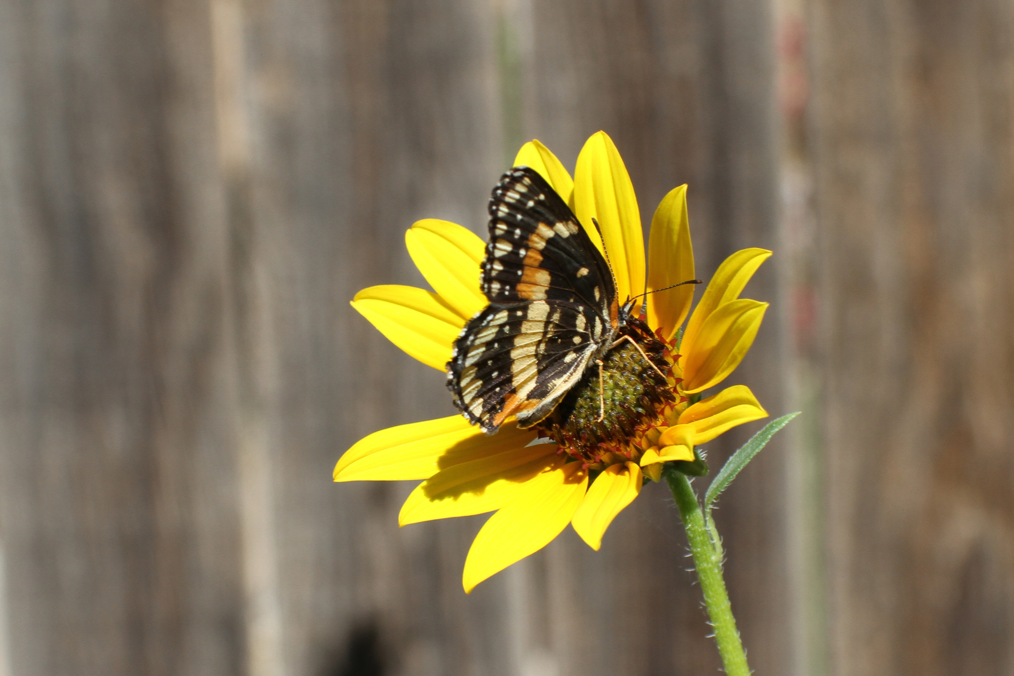 Chlosyne lacinia | species | Helianthus petiolaris | species | visitsFlowersOf | Animalia | Arthropoda | Insecta | Lepidoptera | Nymphalidae | Chlosyne | Plantae | Tracheophyta | Magnoliopsida | Asterales | Asteraceae | Helianthus | 32.027569 | -102.13999 | 2013 | 9 | 25 | http://creativecommons.org/licenses/by-nc/4.0/ | https://www.inaturalist.org/observations/408380 | |