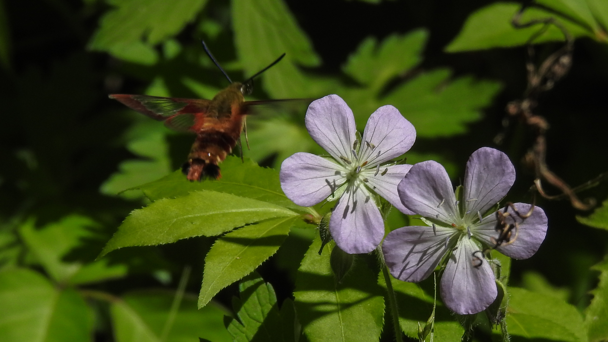 Hemaris thysbe | species | Geranium erianthum | species | visitsFlowersOf | Animalia | Arthropoda | Insecta | Lepidoptera | Sphingidae | Hemaris | Plantae | Tracheophyta | Magnoliopsida | Geraniales | Geraniaceae | Geranium | 42.300648 | -71.630405 | 2023 | 5 | 27 | http://creativecommons.org/publicdomain/zero/1.0/ | https://www.inaturalist.org/observations/165200432 | |