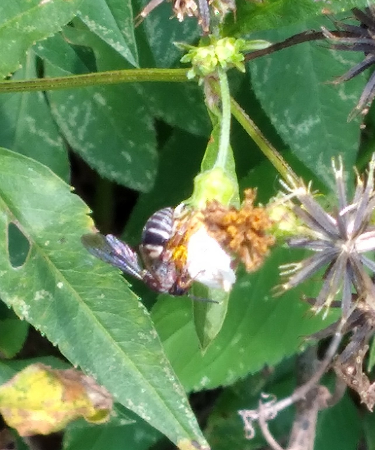 Triepeolus rufithorax | species | Bidens alba | species | visitsFlowersOf | Animalia | Arthropoda | Insecta | Hymenoptera | Apidae | Triepeolus | Plantae | Tracheophyta | Magnoliopsida | Asterales | Asteraceae | Bidens | 30.663874 | -81.438666 | 2021 | 6 | 15 | http://creativecommons.org/licenses/by-nc/4.0/ | https://www.inaturalist.org/observations/83186285 | |