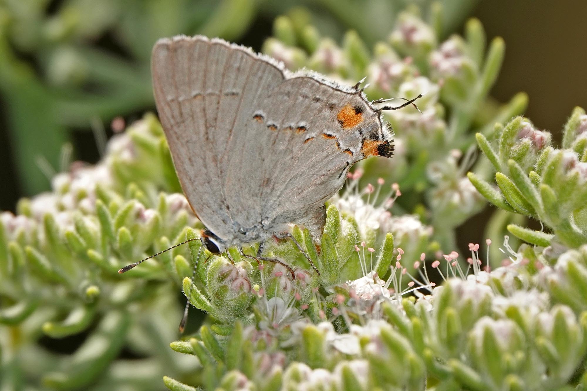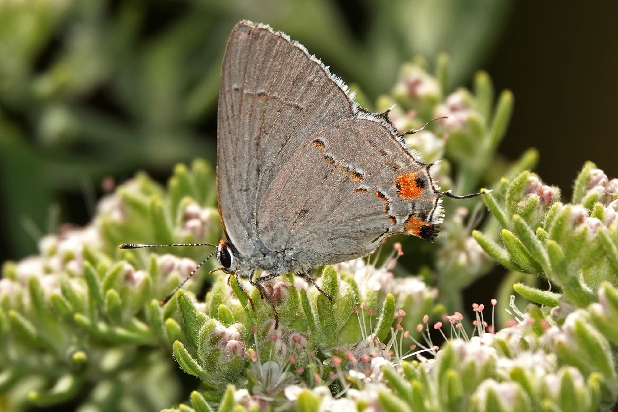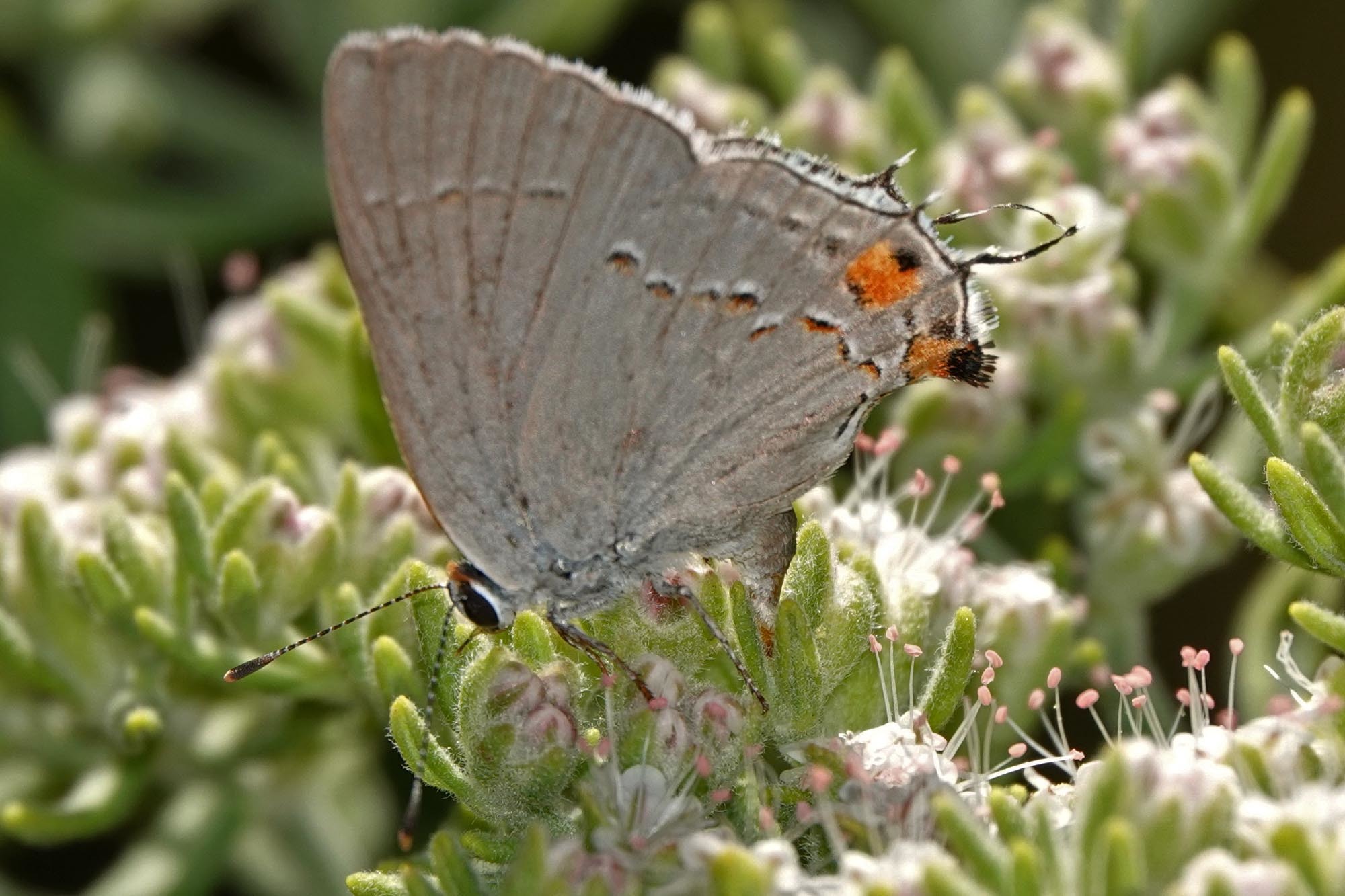 Strymon melinus | species | Eriogonum arborescens | species | laysEggsOn | Animalia | Arthropoda | Insecta | Lepidoptera | Lycaenidae | Strymon | Plantae | Tracheophyta | Magnoliopsida | Caryophyllales | Polygonaceae | Eriogonum | 37.247952 | -121.936472 | 2021 | 6 | 15 | http://creativecommons.org/licenses/by-nc/4.0/ | https://www.inaturalist.org/observations/83187114 | |