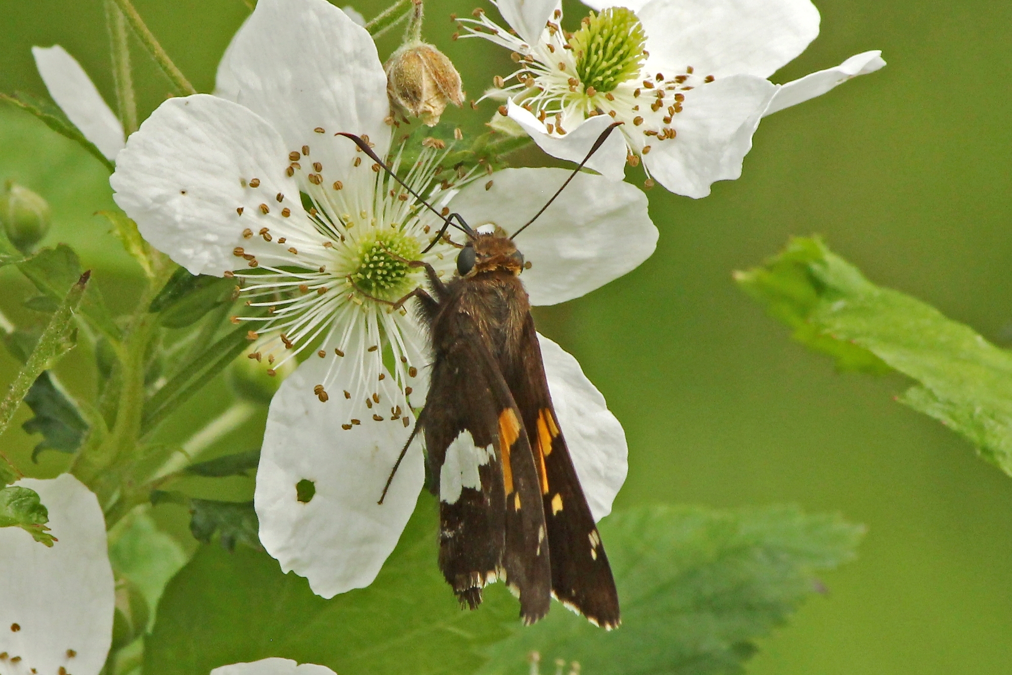 Epargyreus clarus | species | Rubus allegheniensis | species | visitsFlowersOf | Animalia | Arthropoda | Insecta | Lepidoptera | Hesperiidae | Epargyreus | Plantae | Tracheophyta | Magnoliopsida | Rosales | Rosaceae | Rubus | 40.08055 | -80.128928 | 2023 | 5 | 28 | http://creativecommons.org/licenses/by-nc/4.0/ | https://www.inaturalist.org/observations/165187191 | |
