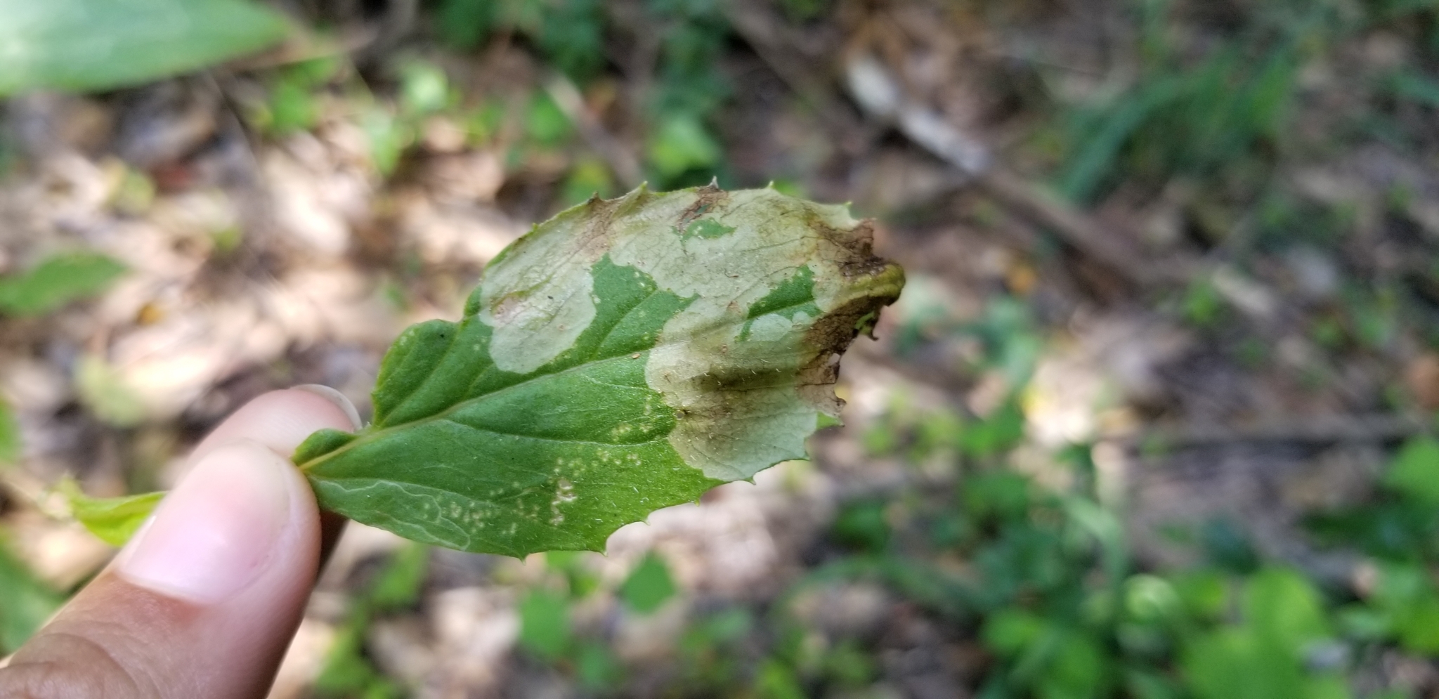Nemorimyza maculosa | species | Erechtites hieraciifolius | species | interactsWith | Animalia | Arthropoda | Insecta | Diptera | Agromyzidae | Nemorimyza | Plantae | Tracheophyta | Magnoliopsida | Asterales | Asteraceae | Erechtites | 35.099395 | -92.466277 | 2021 | 6 | 15 | http://creativecommons.org/licenses/by-nc/4.0/ | https://www.inaturalist.org/observations/83184437 | |