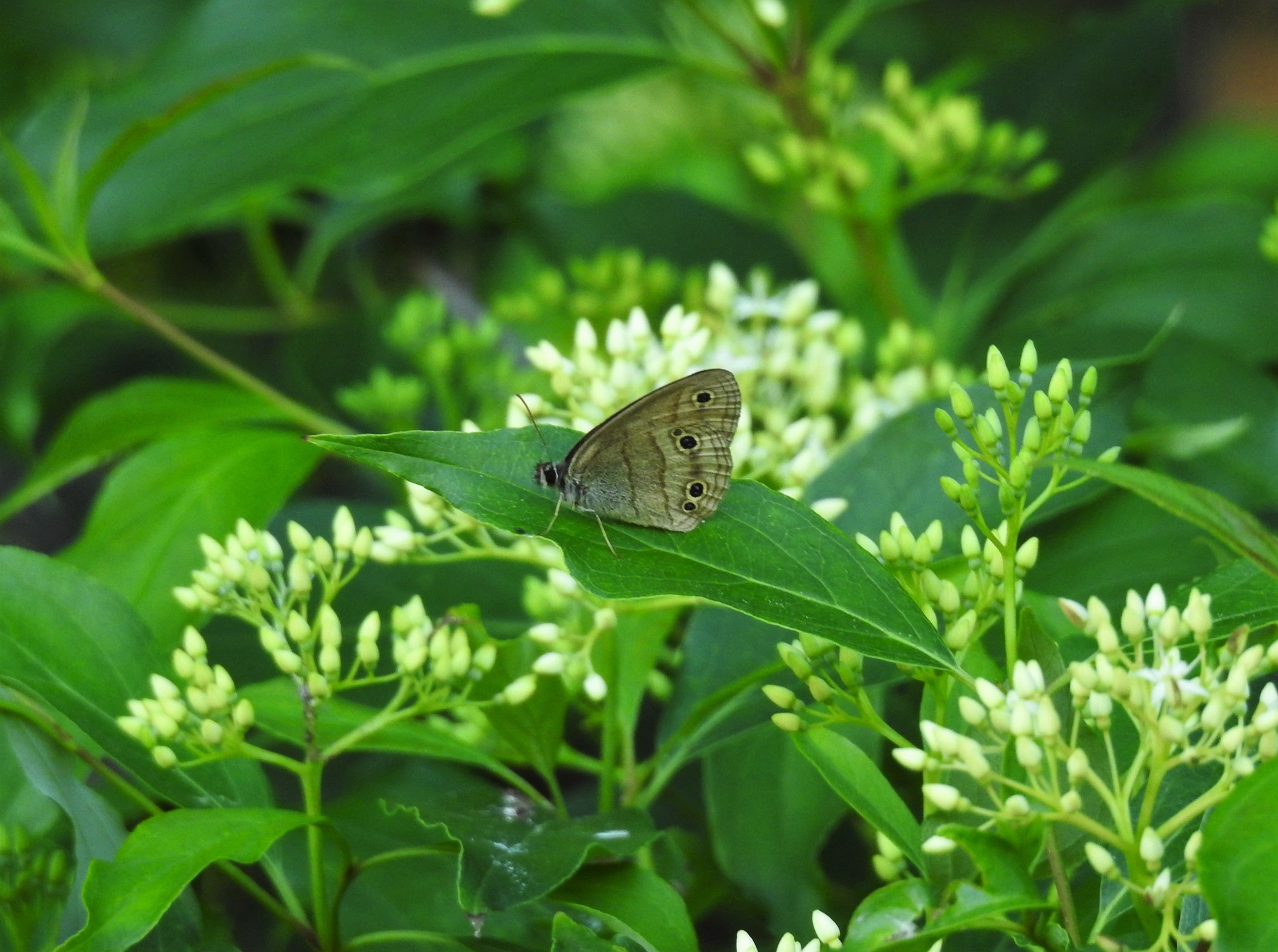 Euptychia cymela | species | Cornus racemosa | species | visitsFlowersOf | Animalia | Arthropoda | Insecta | Lepidoptera | Nymphalidae | Euptychia | Plantae | Tracheophyta | Magnoliopsida | Cornales | Cornaceae | Cornus | 42.457447 | -78.01178 | 2021 | 6 | 14 | http://creativecommons.org/licenses/by-nc/4.0/ | https://www.inaturalist.org/observations/83167625 | |
