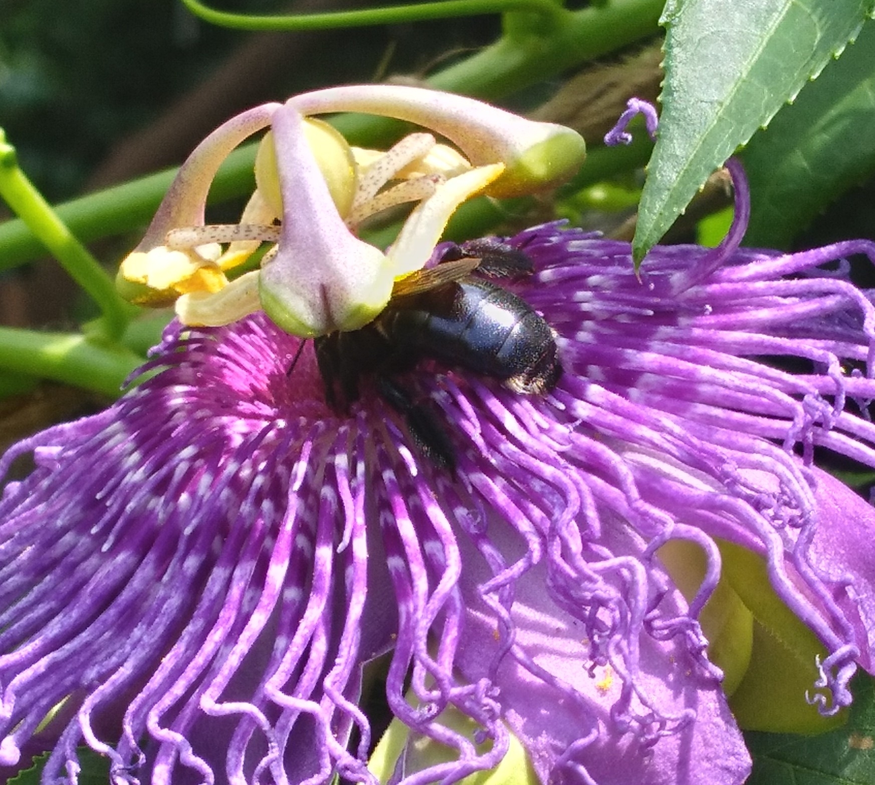 Xylocopa micans | species | Passiflora | genus | visits | Animalia | Arthropoda | Insecta | Hymenoptera | Apidae | Xylocopa | Plantae | Tracheophyta | Magnoliopsida | Malpighiales | Passifloraceae | Passiflora | 30.630101 | -81.581034 | 2021 | 6 | 15 | http://creativecommons.org/licenses/by-nc/4.0/ | https://www.inaturalist.org/observations/83173813 | |