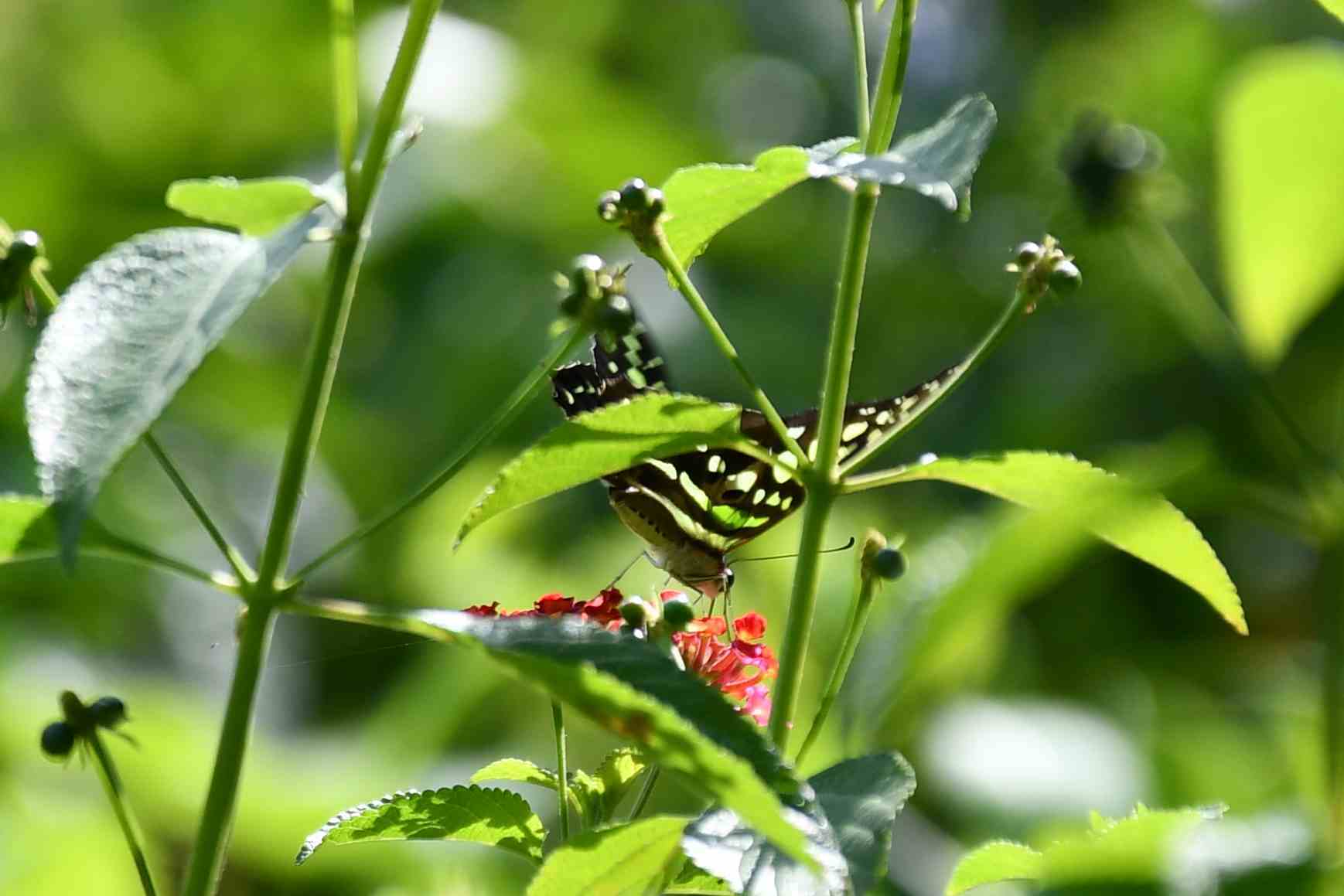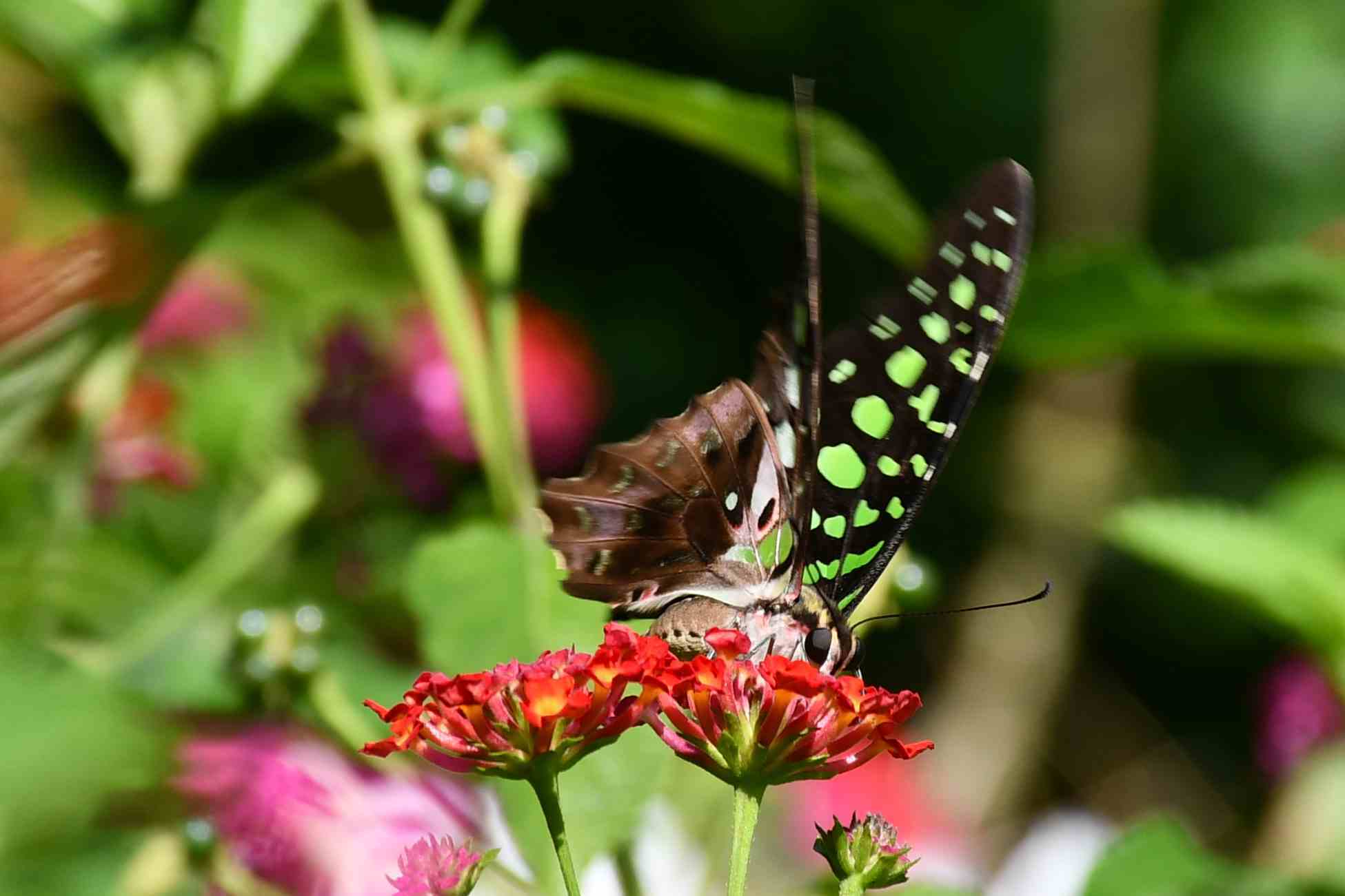 Graphium agamemnon | species | Lantana | genus | eats | Animalia | Arthropoda | Insecta | Lepidoptera | Papilionidae | Graphium | Plantae | Tracheophyta | Magnoliopsida | Lamiales | Verbenaceae | Lantana | 10.129813 | 76.687063 | 2022 | 9 | 28 | http://creativecommons.org/licenses/by-nc/4.0/ | https://www.inaturalist.org/observations/165163120 | |