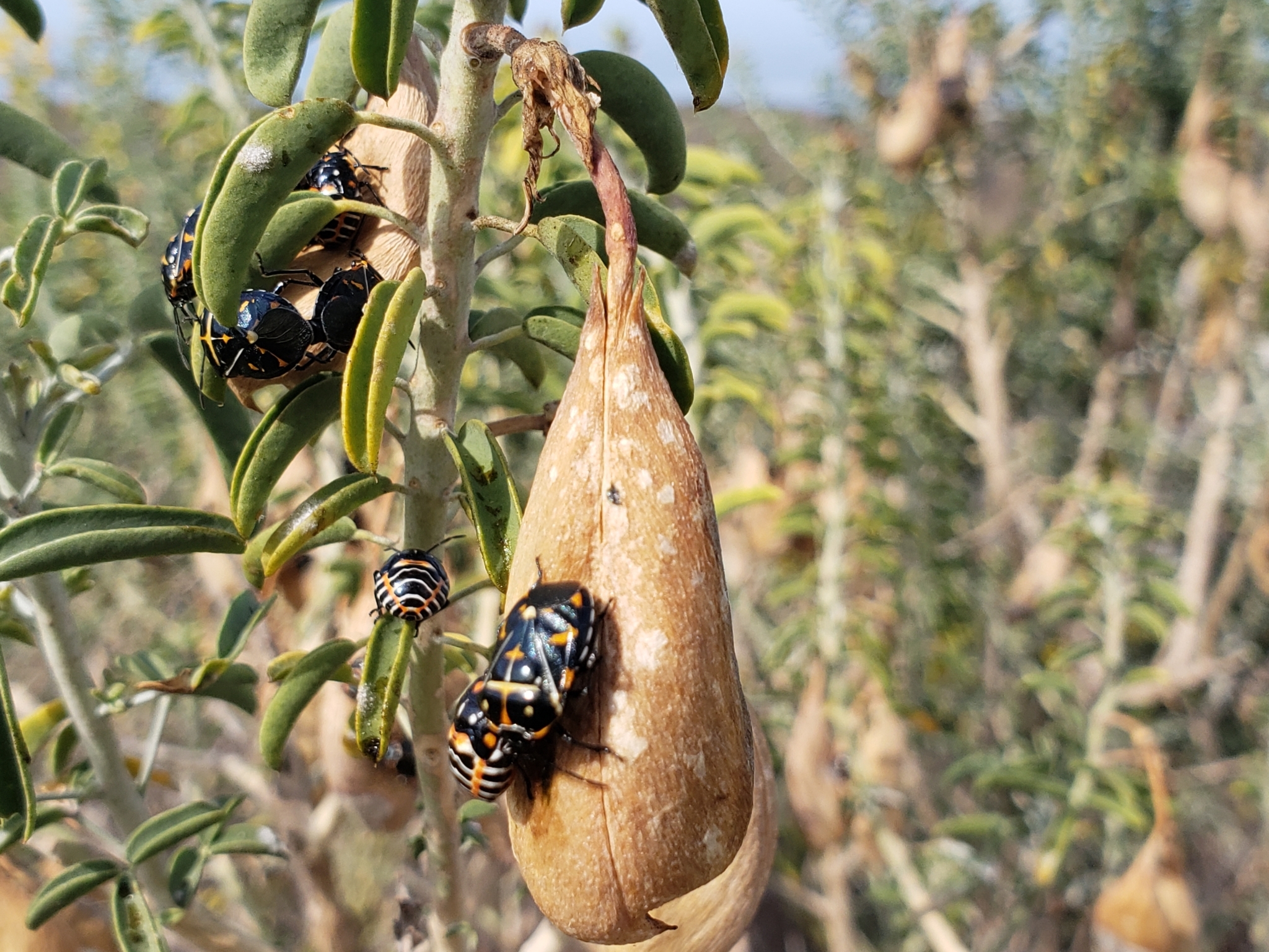 Murgantia histrionica | species | Cleomella arborea | species | interactsWith | Animalia | Arthropoda | Insecta | Hemiptera | Pentatomidae | Murgantia | Plantae | Tracheophyta | Magnoliopsida | Brassicales | Cleomaceae | Cleomella | 33.580057 | -117.846802 | 2021 | 6 | 15 | http://creativecommons.org/licenses/by/4.0/ | https://www.inaturalist.org/observations/83149394 | |
