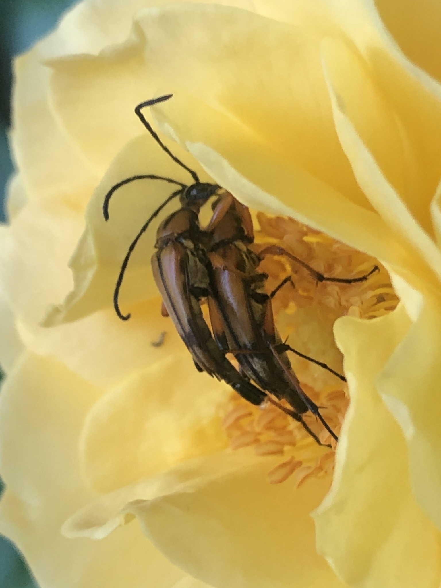 Strangalia famelica | species | Rosa | genus | interactsWith | Animalia | Arthropoda | Insecta | Coleoptera | Cerambycidae | Strangalia | Plantae | Tracheophyta | Magnoliopsida | Rosales | Rosaceae | Rosa | 34.889453 | -89.840232 | 2021 | 6 | 15 | http://creativecommons.org/licenses/by-nc/4.0/ | https://www.inaturalist.org/observations/83150148 | |
