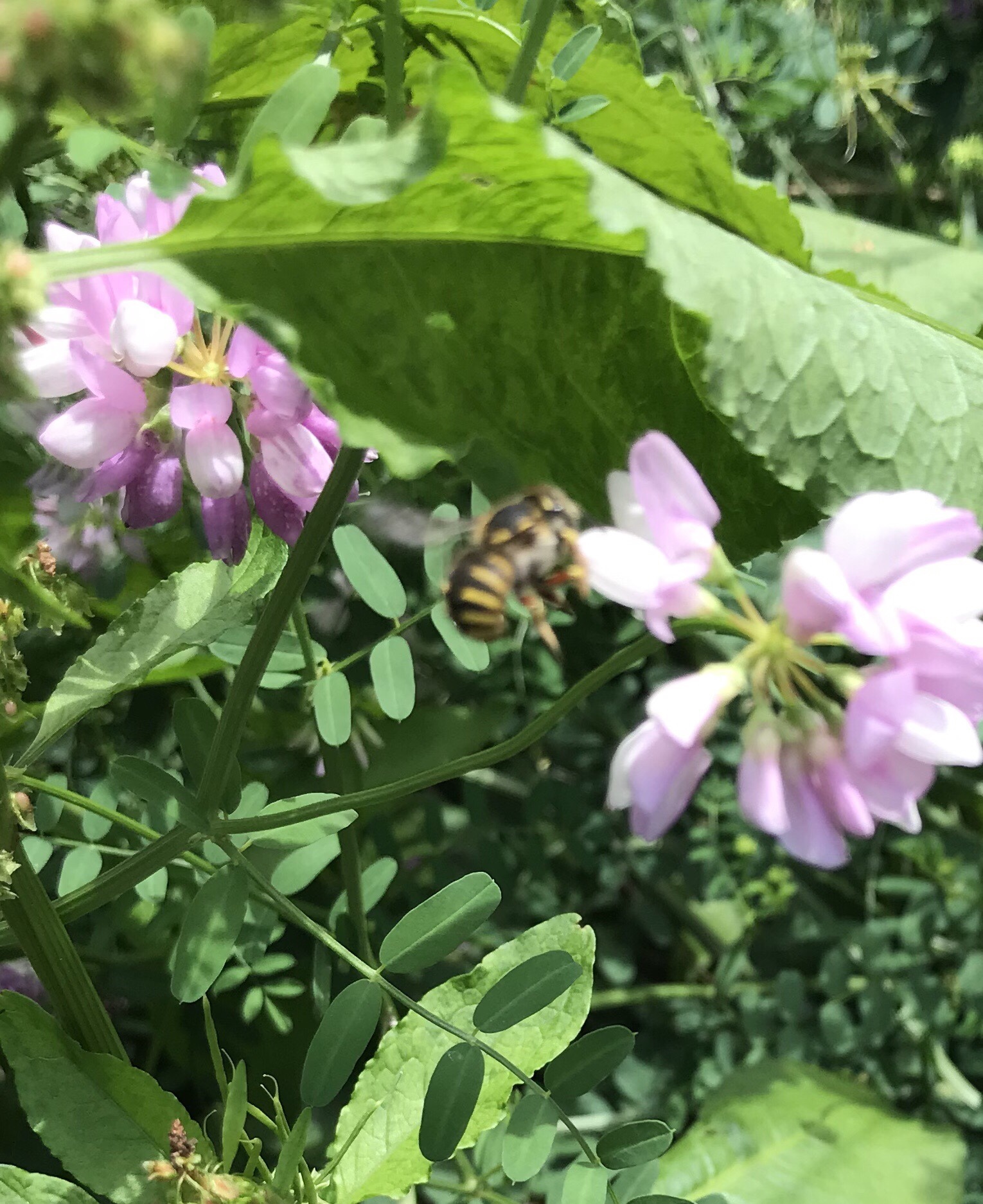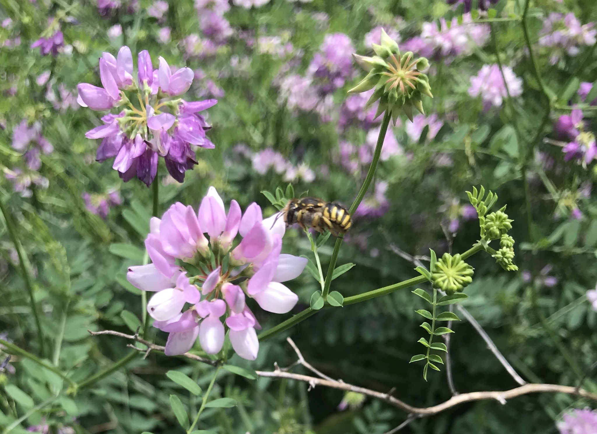 Anthidium manicatum | species | Coronilla varia | species | visitsFlowersOf | Animalia | Arthropoda | Insecta | Hymenoptera | Megachilidae | Anthidium | Plantae | Tracheophyta | Magnoliopsida | Fabales | Fabaceae | Coronilla | 40.457701 | -80.005764 | 2021 | 6 | 15 | http://creativecommons.org/licenses/by-nc/4.0/ | https://www.inaturalist.org/observations/83153862 | |