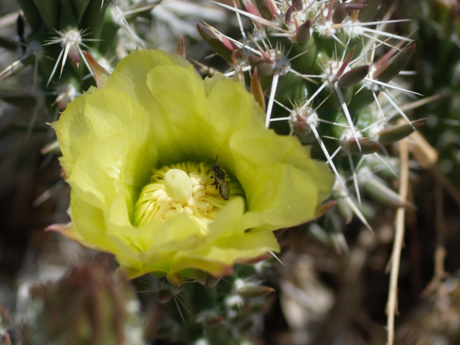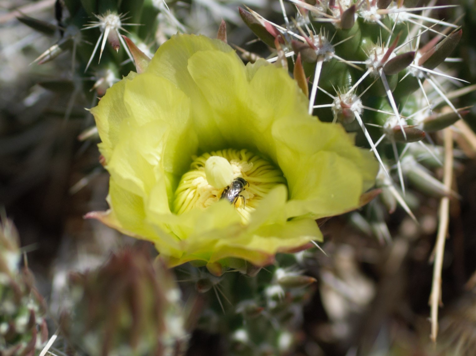 Macrotera | genus | Grusonia clavata | species | eats | Animalia | Arthropoda | Insecta | Hymenoptera | Andrenidae | Macrotera | Plantae | Tracheophyta | Magnoliopsida | Caryophyllales | Cactaceae | Grusonia | 35.000393 | -106.50298 | 2021 | 6 | 15 | http://creativecommons.org/licenses/by/4.0/ | https://www.inaturalist.org/observations/83163462 | |