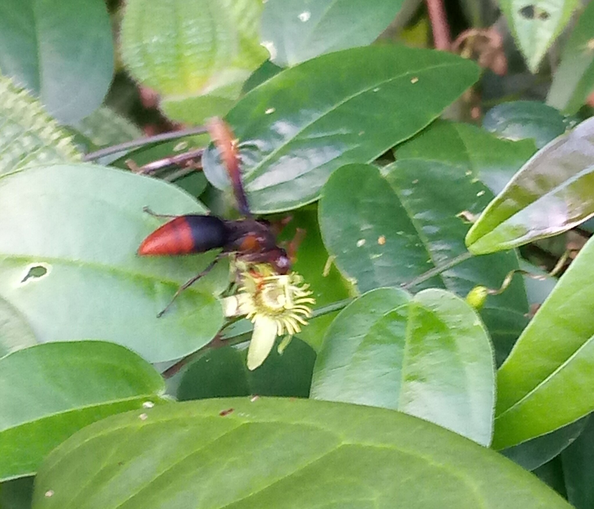 Rhynchium haemorrhoidale | species | Passiflora | genus | visits | Animalia | Arthropoda | Insecta | Hymenoptera | Eumenidae | Rhynchium | Plantae | Tracheophyta | Magnoliopsida | Malpighiales | Passifloraceae | Passiflora | 1.358251 | 103.857833 | 2023 | 6 | 2 | http://creativecommons.org/licenses/by-nc/4.0/ | https://www.inaturalist.org/observations/165135441 | |