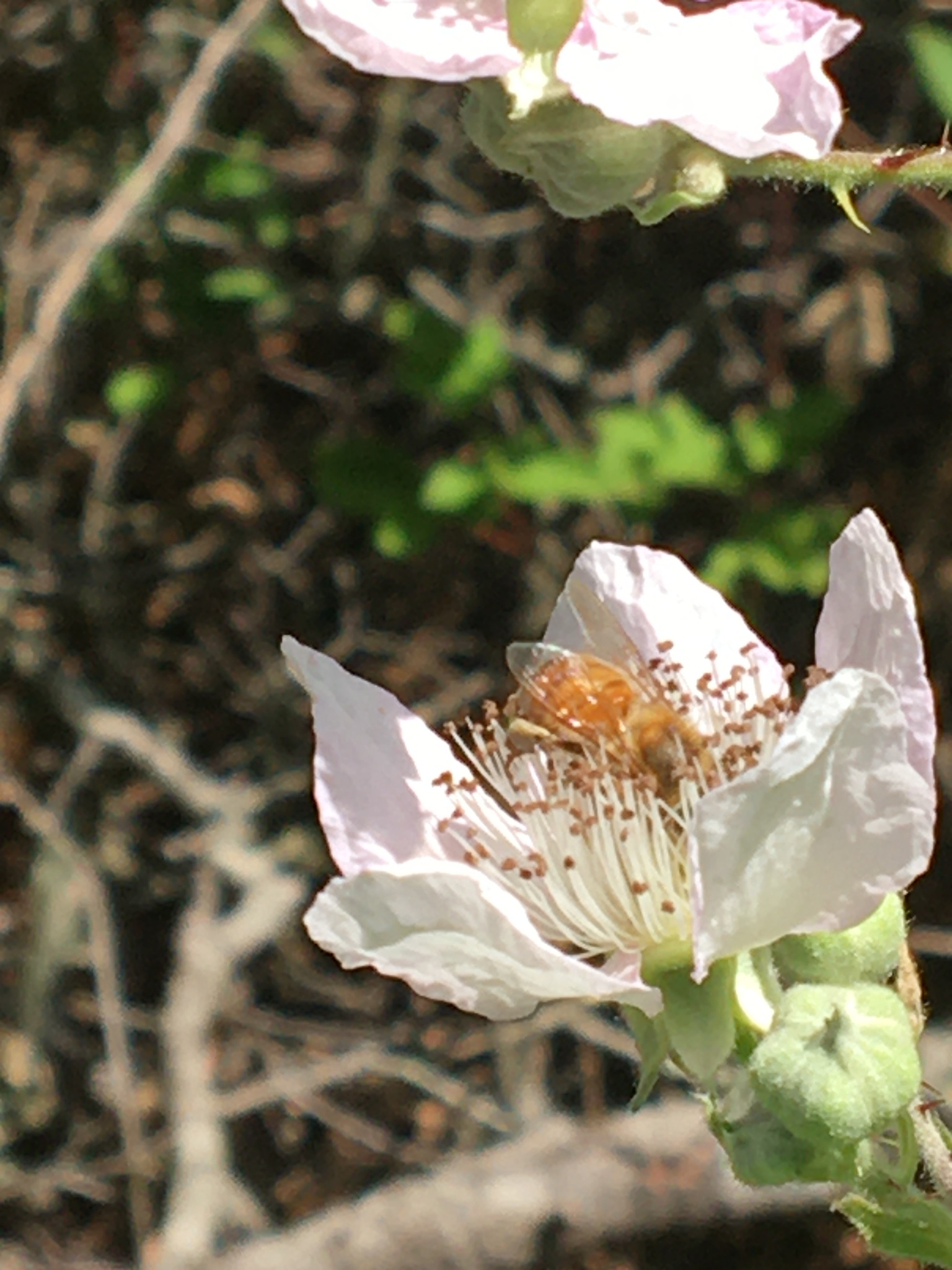 Apis mellifera | species | Rubus armeniacus | species | eats | Animalia | Arthropoda | Insecta | Hymenoptera | Apidae | Apis | Plantae | Tracheophyta | Magnoliopsida | Rosales | Rosaceae | Rubus | 38.346742 | -122.646881 | 2023 | 5 | 31 | http://creativecommons.org/licenses/by-nc/4.0/ | https://www.inaturalist.org/observations/165145442 | |