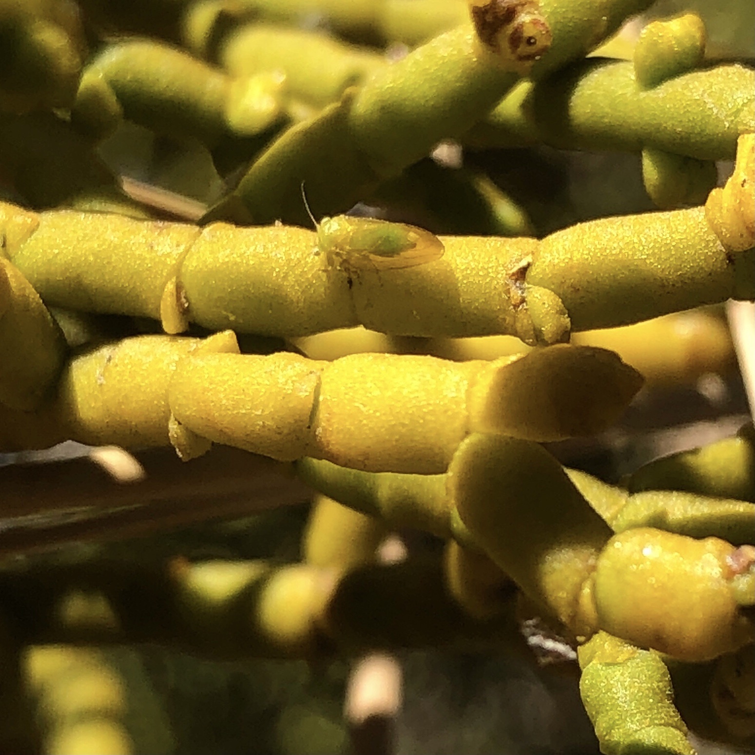 Freysuila phorodendrae | species | Phoradendron juniperinum | species | visitsFlowersOf | Animalia | Arthropoda | Insecta | Hemiptera | Psyllidae | Freysuila | Plantae | Tracheophyta | Magnoliopsida | Santalales | Viscaceae | Phoradendron | 34.263116 | -116.912754 | 2021 | 6 | 11 | http://creativecommons.org/licenses/by-nc/4.0/ | https://www.inaturalist.org/observations/83033005 | |