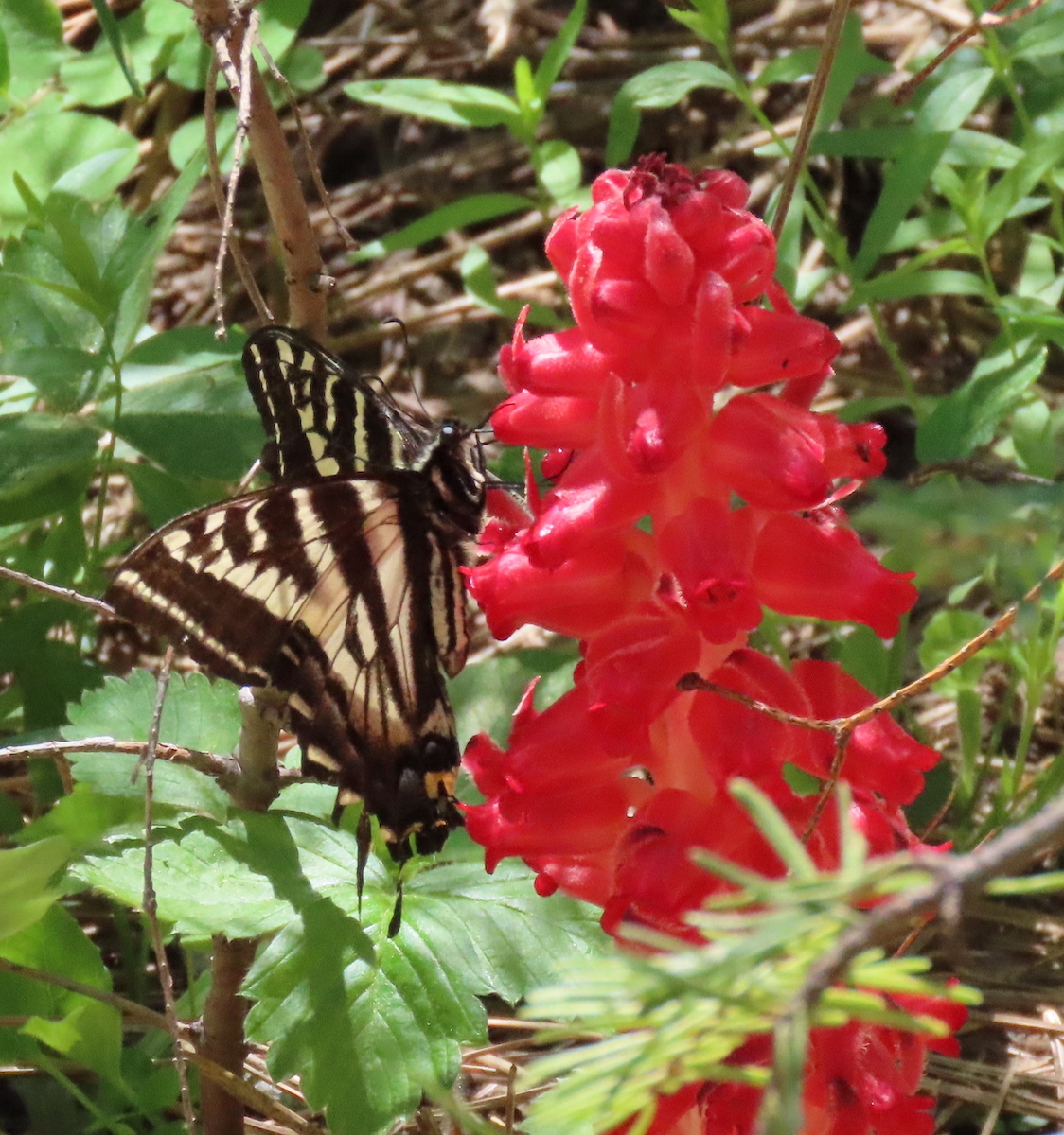 Papilio eurymedon | species | Sarcodes sanguinea | species | eats | Animalia | Arthropoda | Insecta | Lepidoptera | Papilionidae | Papilio | Plantae | Tracheophyta | Magnoliopsida | Ericales | Ericaceae | Sarcodes | 38.183214 | -120.036575 | 2021 | 6 | 10 | http://creativecommons.org/licenses/by-nc/4.0/ | https://www.inaturalist.org/observations/83034066 | |