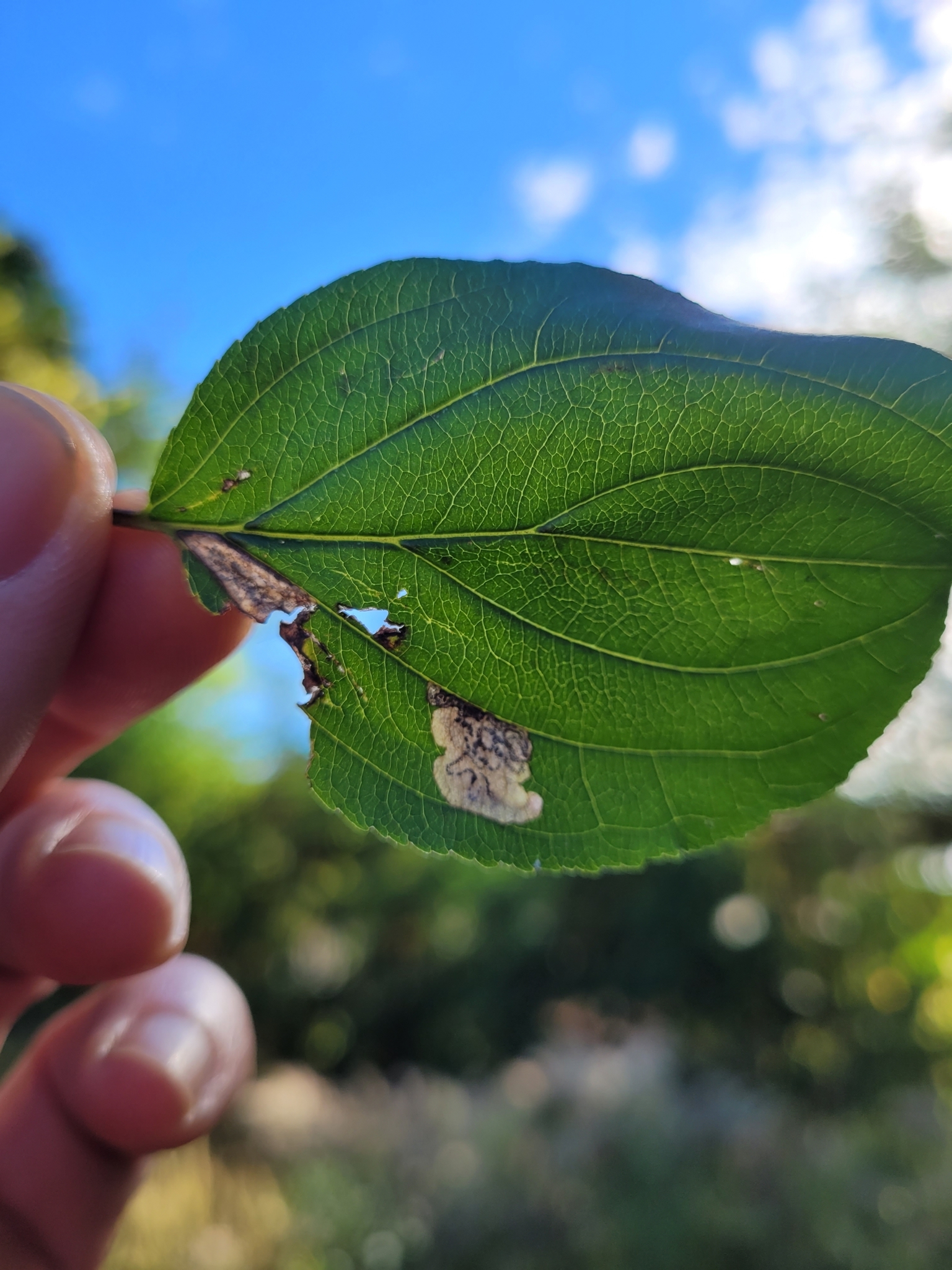 Stigmella rhamnicola | species | Rhamnus cathartica | species | interactsWith | Animalia | Arthropoda | Insecta | Lepidoptera | Nepticulidae | Stigmella | Plantae | Tracheophyta | Magnoliopsida | Rosales | Rhamnaceae | Rhamnus | 44.53691 | -73.275622 | 2024 | 10 | 8 | http://creativecommons.org/licenses/by-nc/4.0/ | https://www.inaturalist.org/observations/247007844 | |