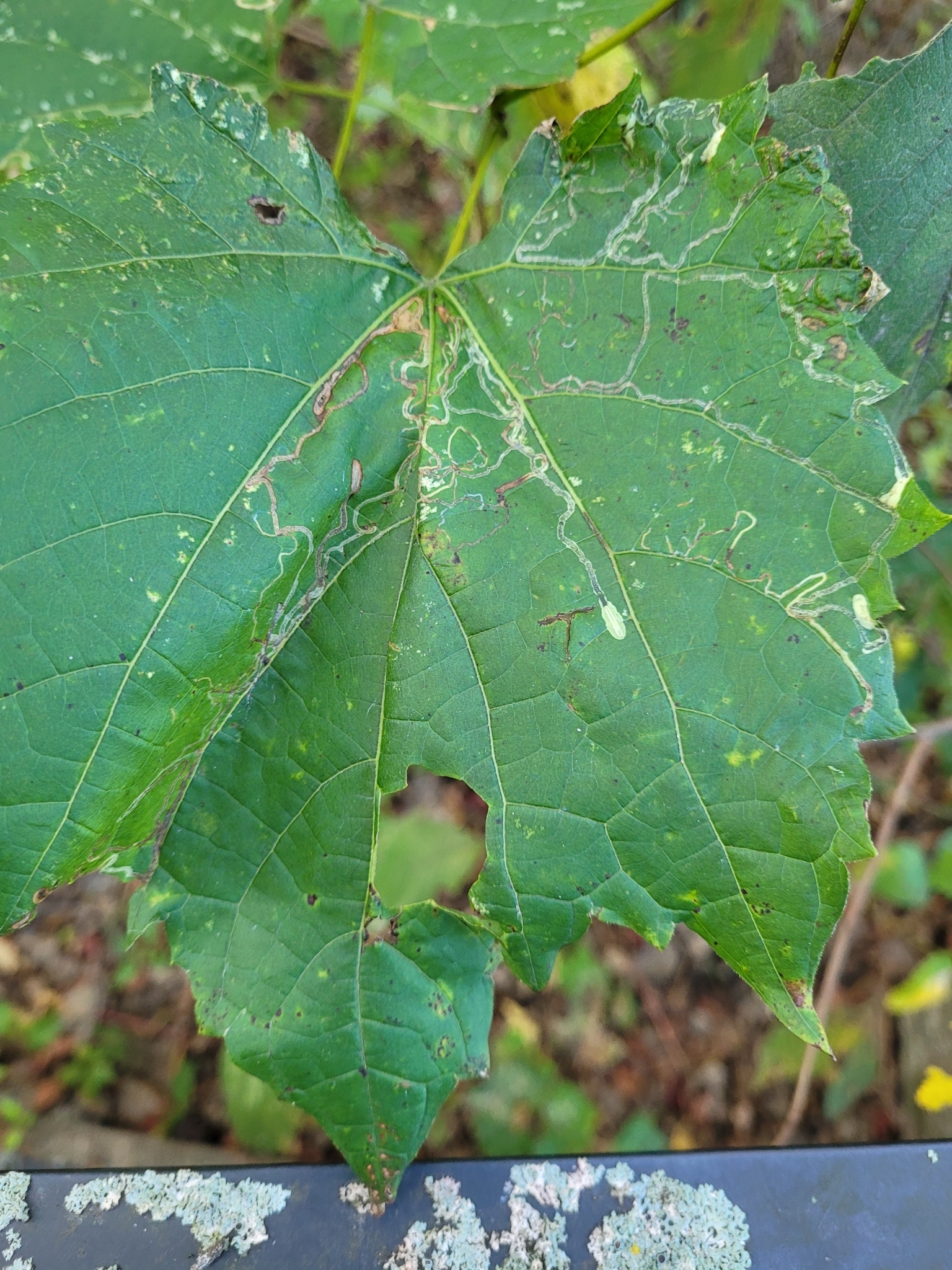Phyllocnistis vitifoliella | species | Vitis riparia | species | interactsWith | Animalia | Arthropoda | Insecta | Lepidoptera | Gracillariidae | Phyllocnistis | Plantae | Tracheophyta | Magnoliopsida | Vitales | Vitaceae | Vitis | 44.536202 | -73.276247 | 2024 | 10 | 8 | http://creativecommons.org/licenses/by-nc/4.0/ | https://www.inaturalist.org/observations/247008132 | |