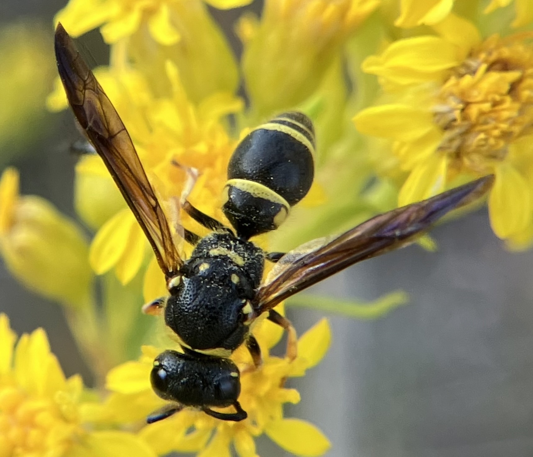 Ancistrocerus campestris | species | Solidago sempervirens | species | visitsFlowersOf | Animalia | Arthropoda | Insecta | Hymenoptera | Vespidae | Ancistrocerus | Plantae | Tracheophyta | Magnoliopsida | Asterales | Asteraceae | Solidago | 38.93198 | -74.957612 | 2024 | 10 | 12 | http://creativecommons.org/licenses/by/4.0/ | https://www.inaturalist.org/observations/247008706 | |
