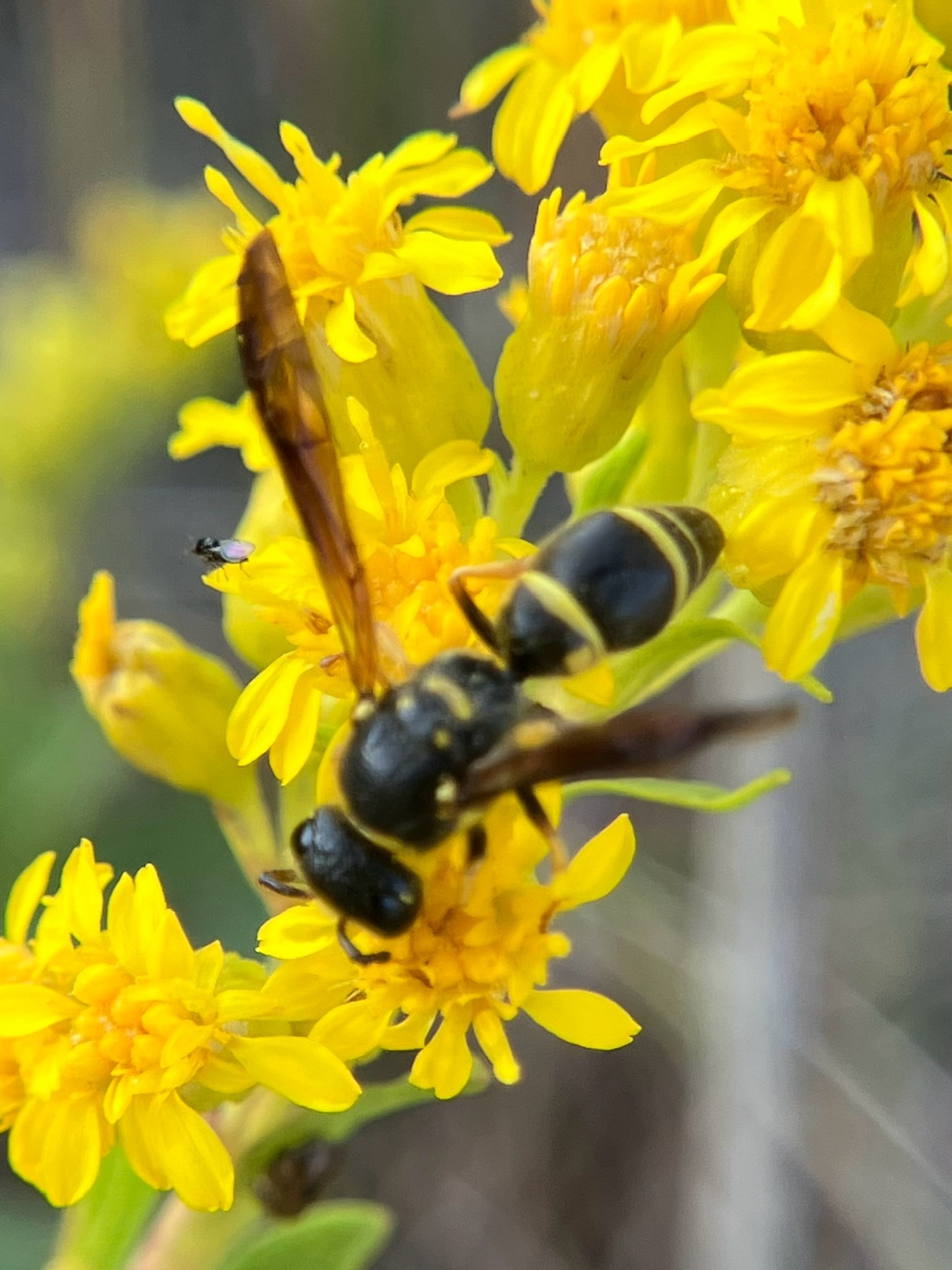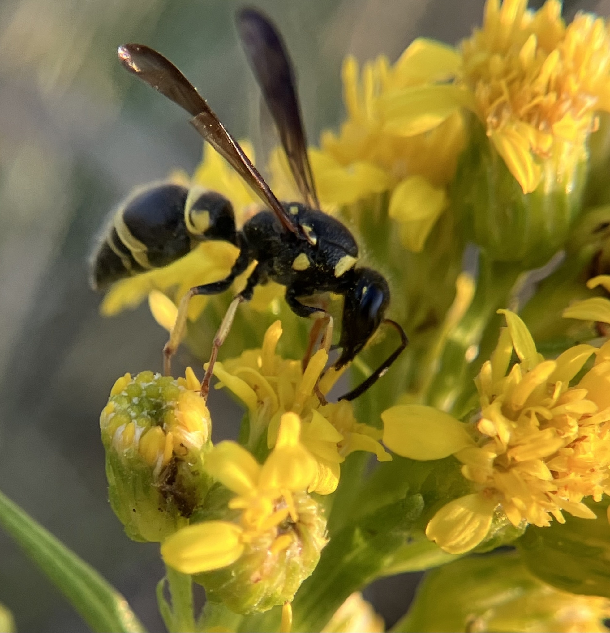 Ancistrocerus campestris | species | Solidago sempervirens | species | visitsFlowersOf | Animalia | Arthropoda | Insecta | Hymenoptera | Vespidae | Ancistrocerus | Plantae | Tracheophyta | Magnoliopsida | Asterales | Asteraceae | Solidago | 38.93197 | -74.957572 | 2024 | 10 | 12 | http://creativecommons.org/licenses/by/4.0/ | https://www.inaturalist.org/observations/247009662 | |