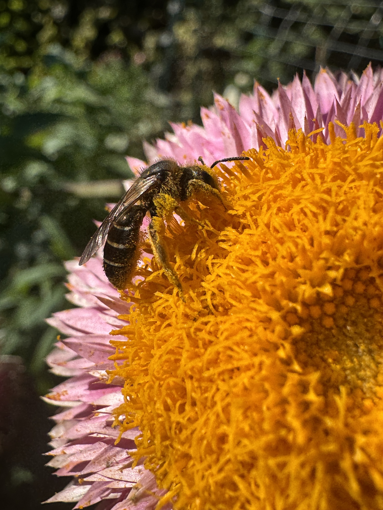 Halictus rubicundus | species | Helichrysum | genus | eats | Animalia | Arthropoda | Insecta | Hymenoptera | Halictidae | Halictus | Plantae | Tracheophyta | Magnoliopsida | Asterales | Asteraceae | Helichrysum | 48.622423 | -123.646172 | 2024 | 10 | 12 | http://creativecommons.org/licenses/by-nc/4.0/ | https://www.inaturalist.org/observations/246986318 | |