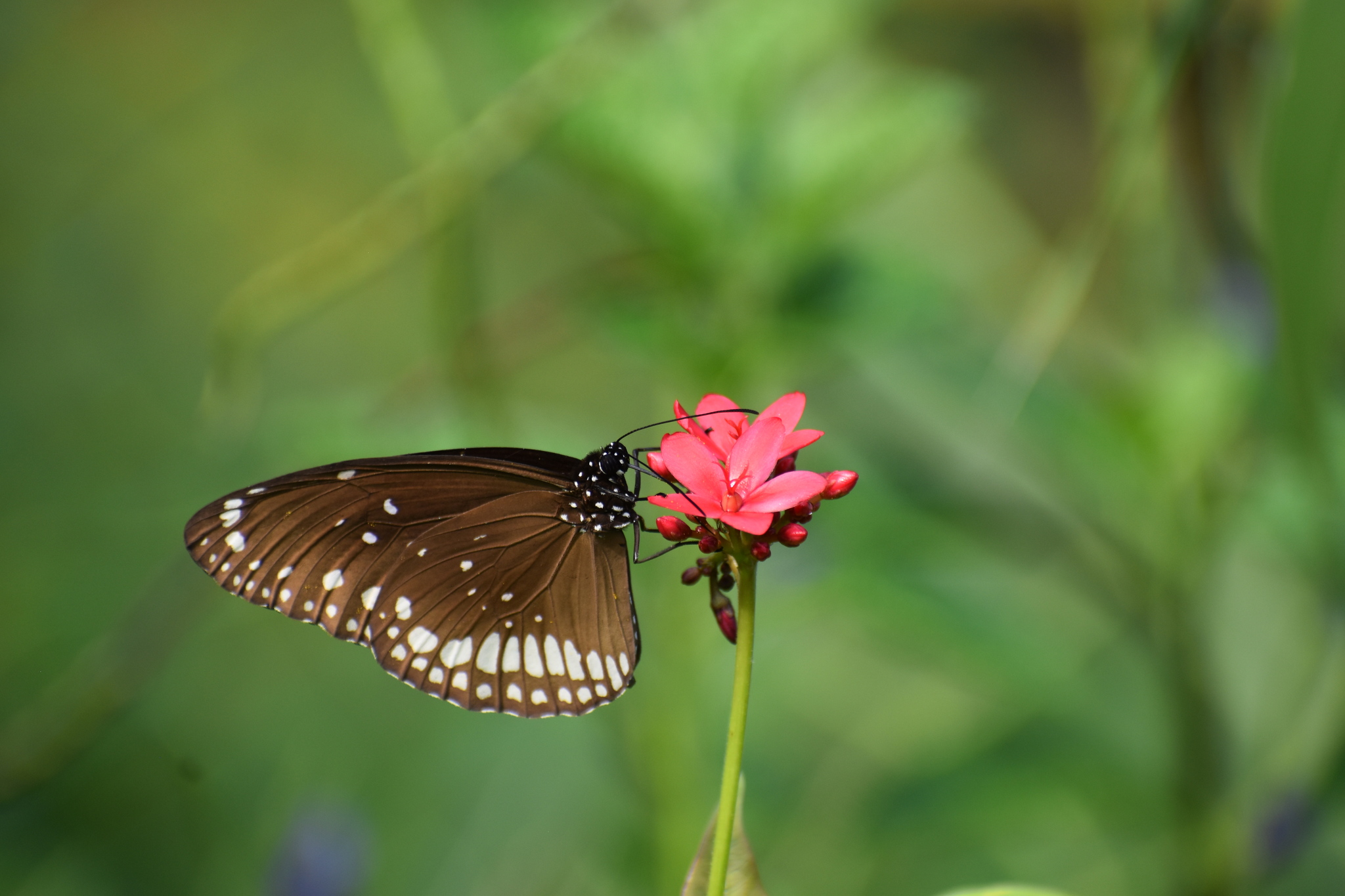 Euploea core | species | Jatropha integerrima | species | visitsFlowersOf | Animalia | Arthropoda | Insecta | Lepidoptera | Nymphalidae | Euploea | Plantae | Tracheophyta | Magnoliopsida | Malpighiales | Euphorbiaceae | Jatropha | 19.141906 | 72.964628 | 2024 | 10 | 12 | http://creativecommons.org/licenses/by-nc/4.0/ | https://www.inaturalist.org/observations/246986365 | |