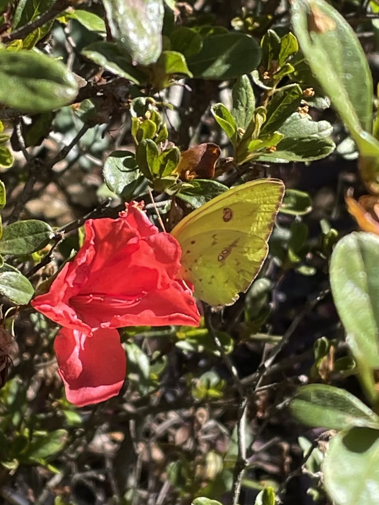 Phoebis sennae | species | Rhododendron simsii | species | visitsFlowersOf | Animalia | Arthropoda | Insecta | Lepidoptera | Pieridae | Phoebis | Plantae | Tracheophyta | Magnoliopsida | Ericales | Ericaceae | Rhododendron | 34.012242 | -84.61607 | 2024 | 10 | 12 | http://creativecommons.org/licenses/by/4.0/ | https://www.inaturalist.org/observations/246951641 | |