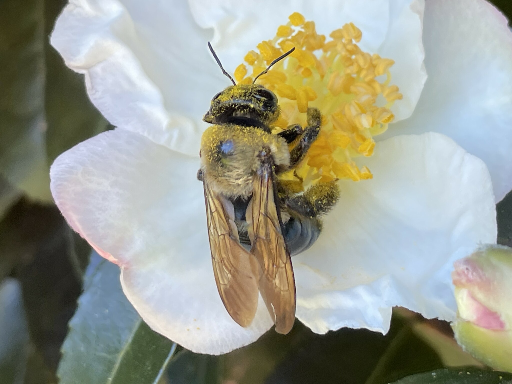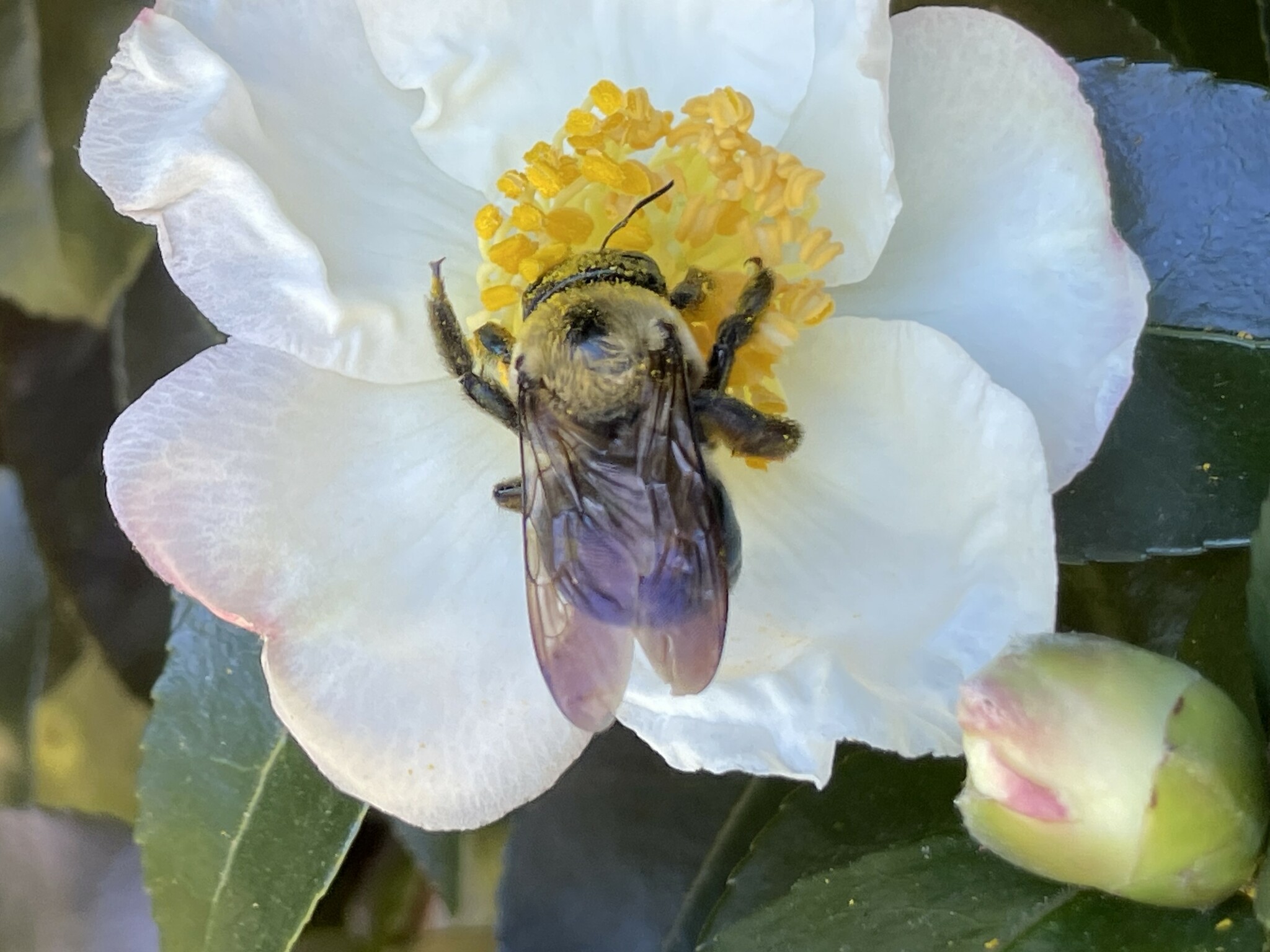 Xylocopa virginica | species | Camellia sasanqua | species | visitsFlowersOf | Animalia | Arthropoda | Insecta | Hymenoptera | Apidae | Xylocopa | Plantae | Tracheophyta | Magnoliopsida | Ericales | Theaceae | Camellia | 33.813761 | -84.283394 | 2024 | 10 | 12 | http://creativecommons.org/licenses/by/4.0/ | https://www.inaturalist.org/observations/246956348 | |
