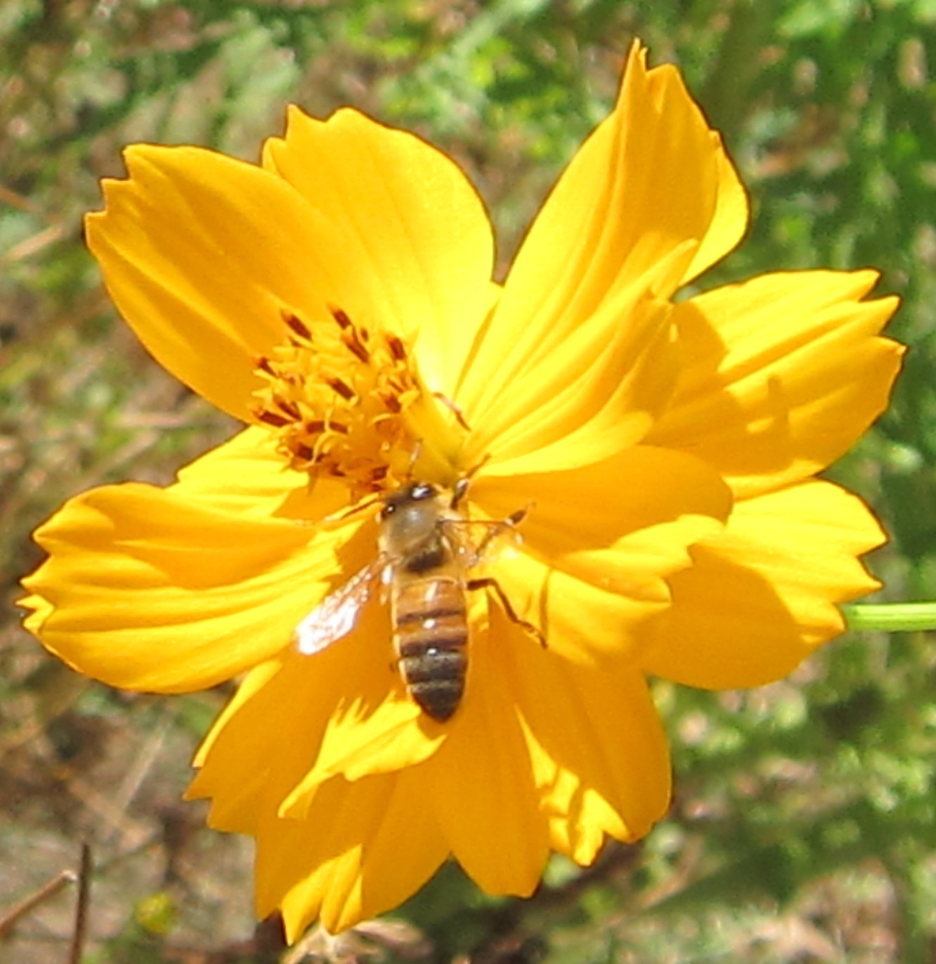 Apis mellifera | species | Cosmos sulphureus | species | visits | Animalia | Arthropoda | Insecta | Hymenoptera | Apidae | Apis | Plantae | Tracheophyta | Magnoliopsida | Asterales | Asteraceae | Cosmos | 36.122672 | -95.950214 | 2024 | 10 | 11 | http://creativecommons.org/licenses/by-nc/4.0/ | https://www.inaturalist.org/observations/246961084 | |